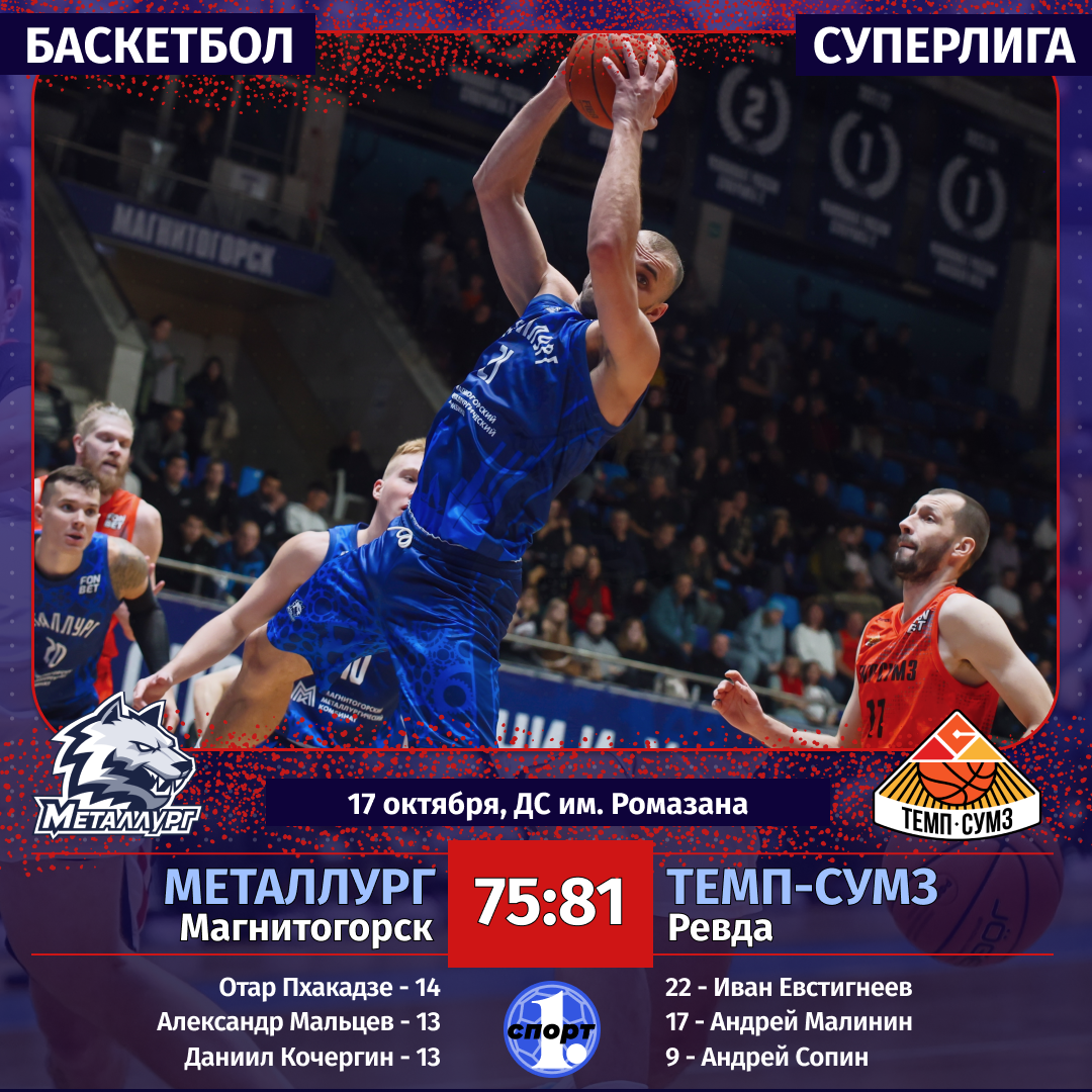 17 октября. «Металлург» (Магнитогорск) — «Темп-СУМЗ» (Ревда) — 75:81 (20:19, 23:25, 75:81, 13:14).