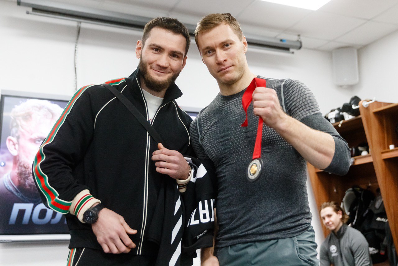 Чемпион мира по боксу Бахрам Муртазалиев получил именное джерси хоккейного клуба «Трактор». Титулованный спортсмен посетил домашнюю игру челябинской команды, произвел стартовое вбрасывание, а после матча поздравил земляков с победой в матче КХЛ. Боксер пообещал игрокам «Трактора», что в следующем бою выйдет на ринг в джерси челябинского клуба, сообщает корреспондент ИА «Первое областное».