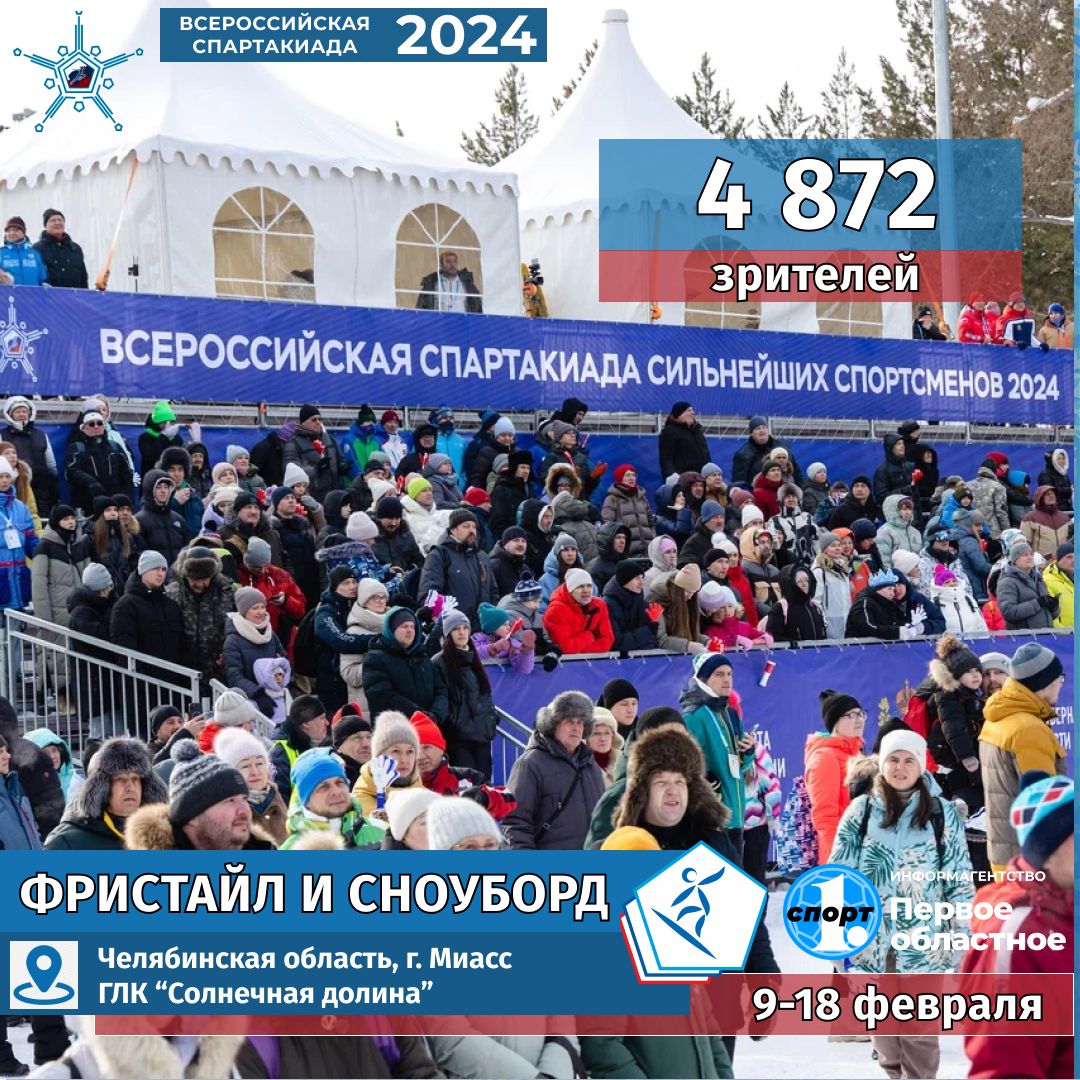 5. Миасс. Горнолыжный курорт «Солнечная долина». Сноуборд и фристайл (9—18 февраля) — 4872 (в среднем 974 зрителя).