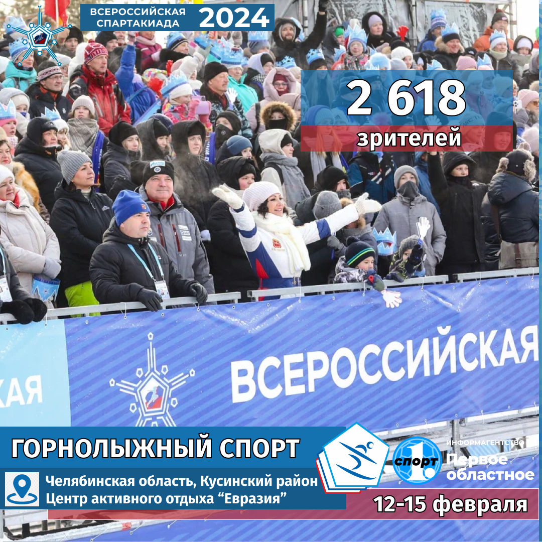 7. Куса. Центр активного отдыха «Евразия». Горнолыжный спорт (12—15 февраля) — 2618 (в среднем 654 зрителя).