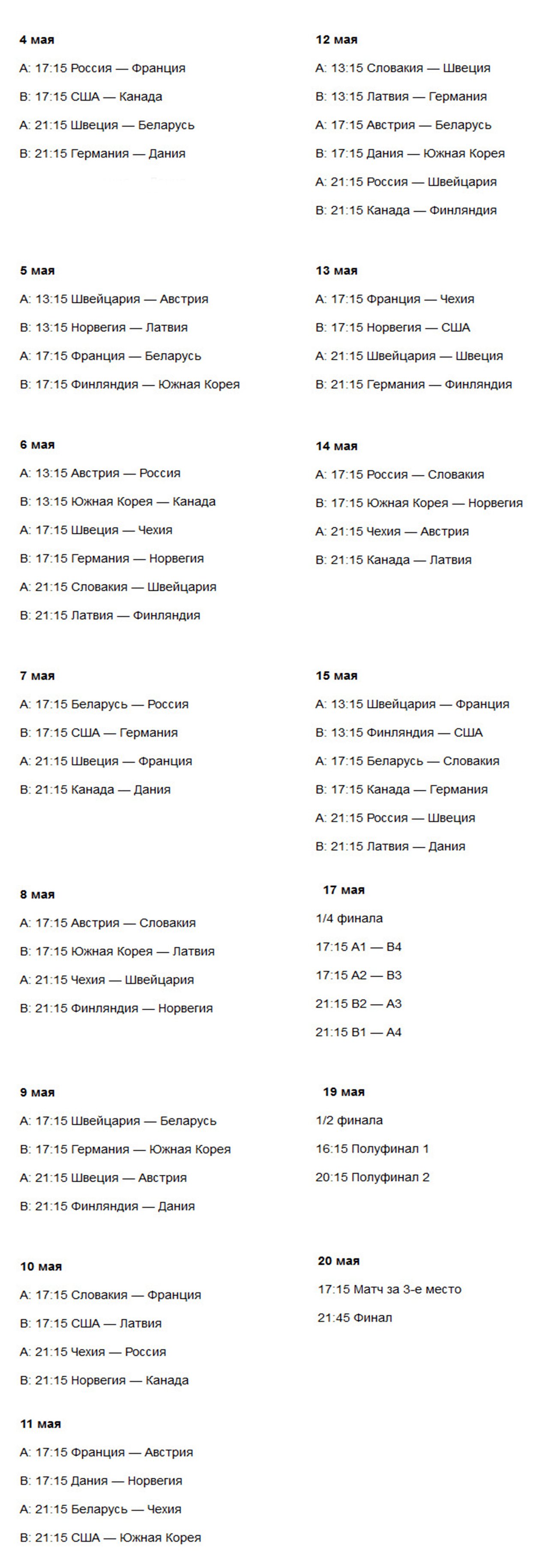 Расписание матчей: