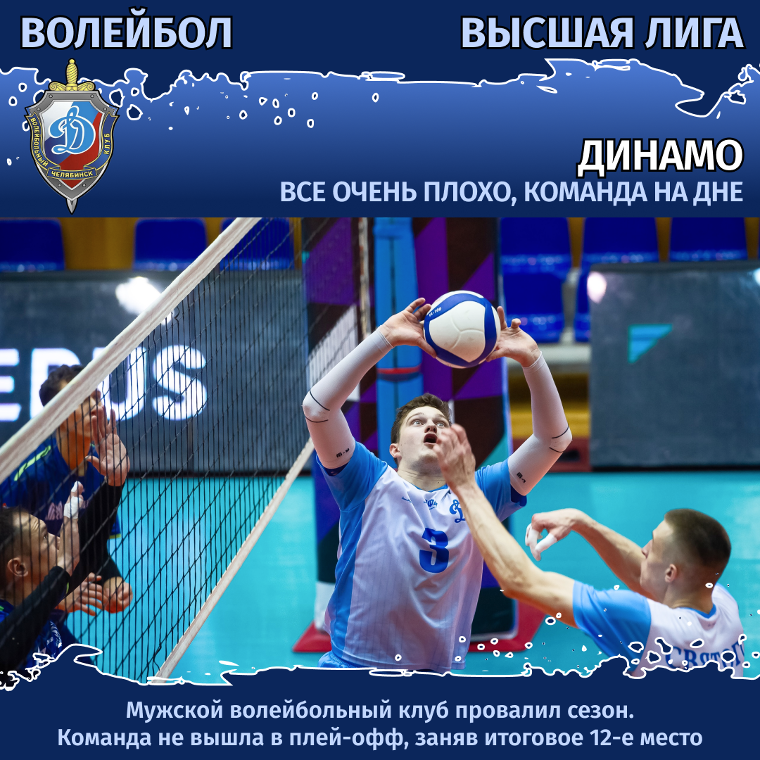 Куда хуже складываются дела в мужском волейбольном клубе из Челябинска. И это притом что «Динамо» выступает в турнире рангом ниже — Высшей лиге. Но игра у ребят не пошла с самого начала. Они провалили предварительный этап, завершив его на последней, 8-й строчке, в дивизионе «Восток».
