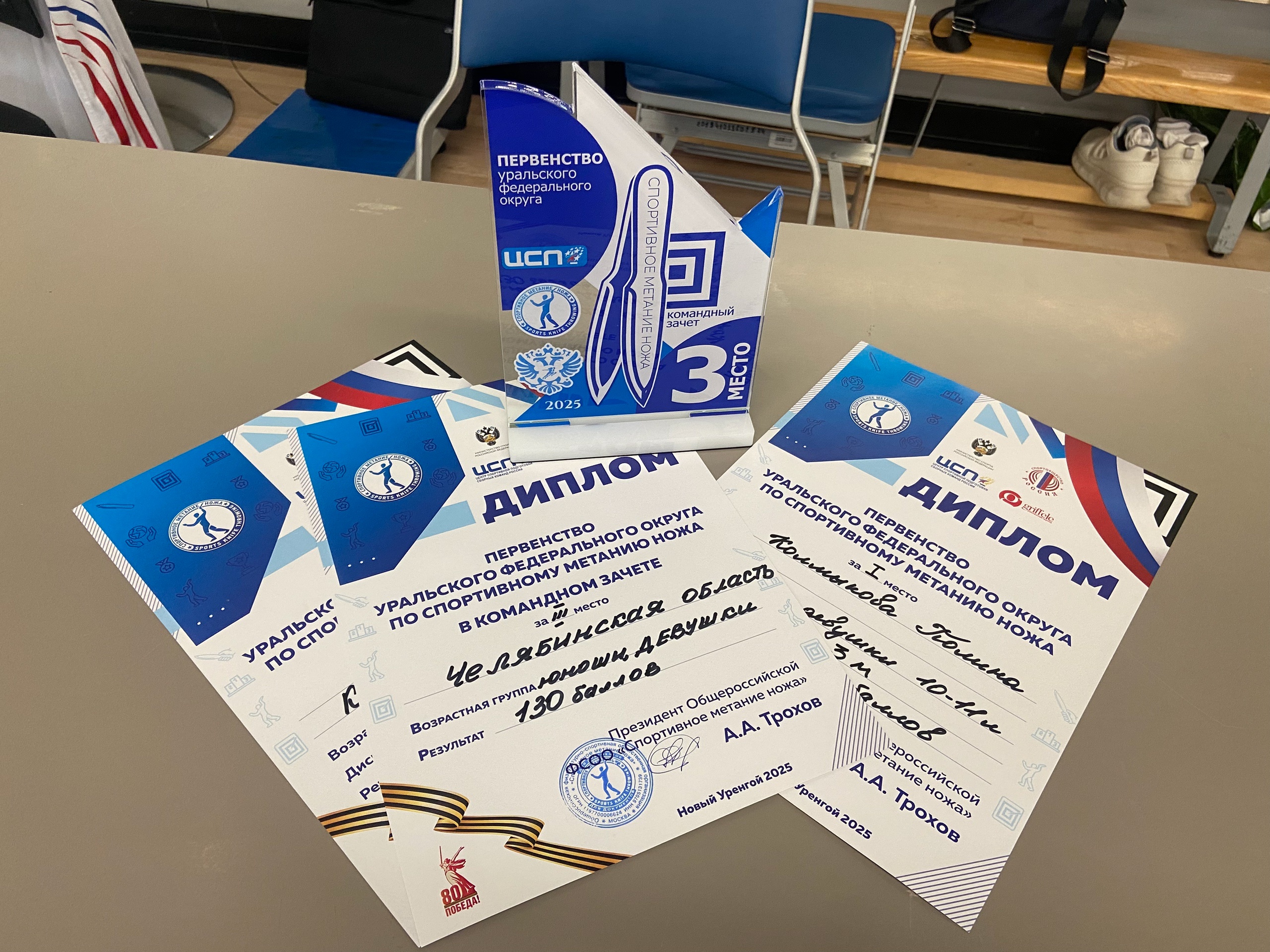 В Новом Уренгое завершились чемпионат и первенство УрФО по спортивному метанию ножа. Достойно выступила в соревнованиях сборная Челябинской области, ставшая бронзовым призером в командном первенстве. В ее составе отличилась Полина Колмыкова, она выиграла состязания в возрастной категории 10—11 лет, сообщает корреспондент ИА «Первое областное».