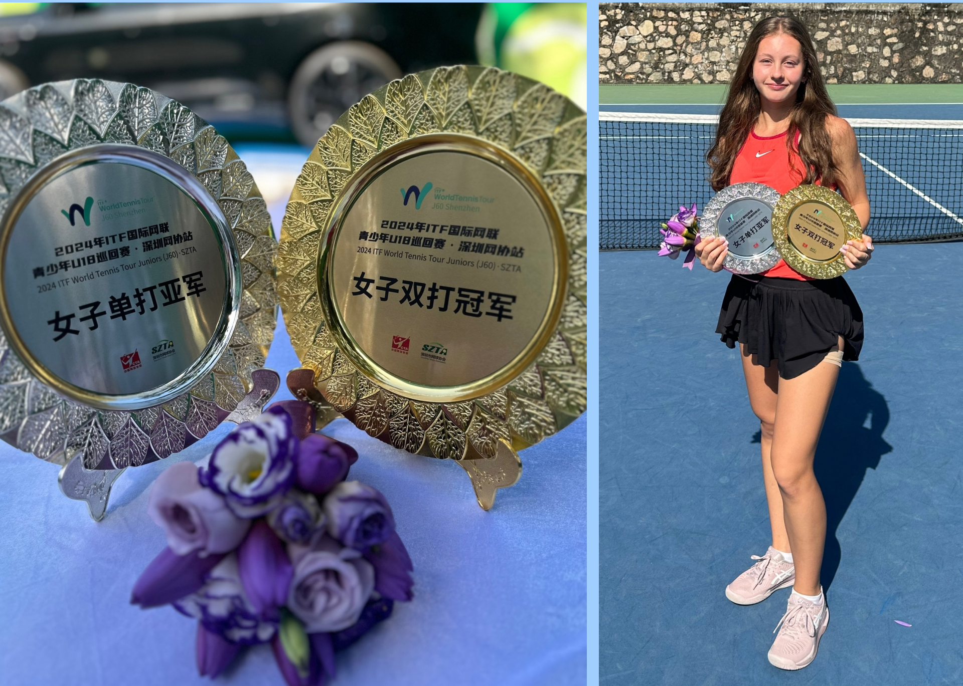 Перспективная теннисистка из Челябинска Валерия Галяева завоевала две медали на международном турнире в Китае. Соревнования ITF Junior собрали участников не старше 18 лет. Южноуральская 15-летняя спортсменка сначала стала серебряным призером в женском одиночном разряде, а затем с китаянкой закрепила успех, выиграв турнир, сообщает корреспондент ИА «Первое областное».