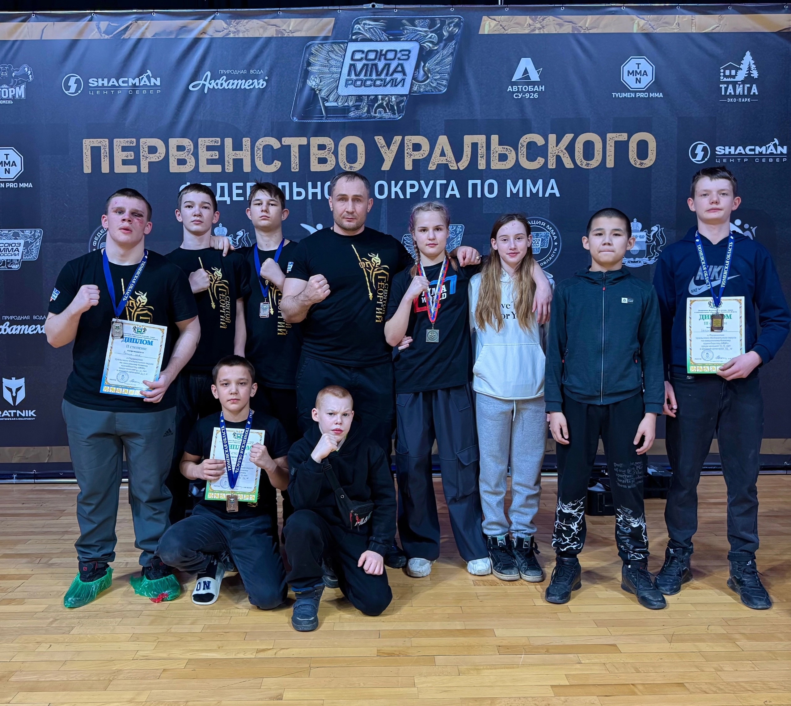 В Тюмени завершилось первенство УрФО по смешанному боевому единоборству ММА, по итогам которого сборная Челябинской области завоевала 33 медали. Это позволило южноуральской команде занять третье место в общем зачете, уступив лишь 3 балла занявшей второе место сборной ХМАО-Югра. Приз за лучшую технику получил боец клуба «Уральский витязь» Всеволод Пономарев, сообщает пресс-служба региональной Федерации СБЕ ММА.