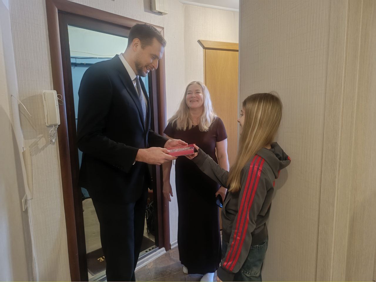 Владимир Иванов лично вручил детям их заветные подарки. Ребята, в свою очередь, тепло поздравили министра с наступающими праздниками и преподнесли ему сладкий подарок.
