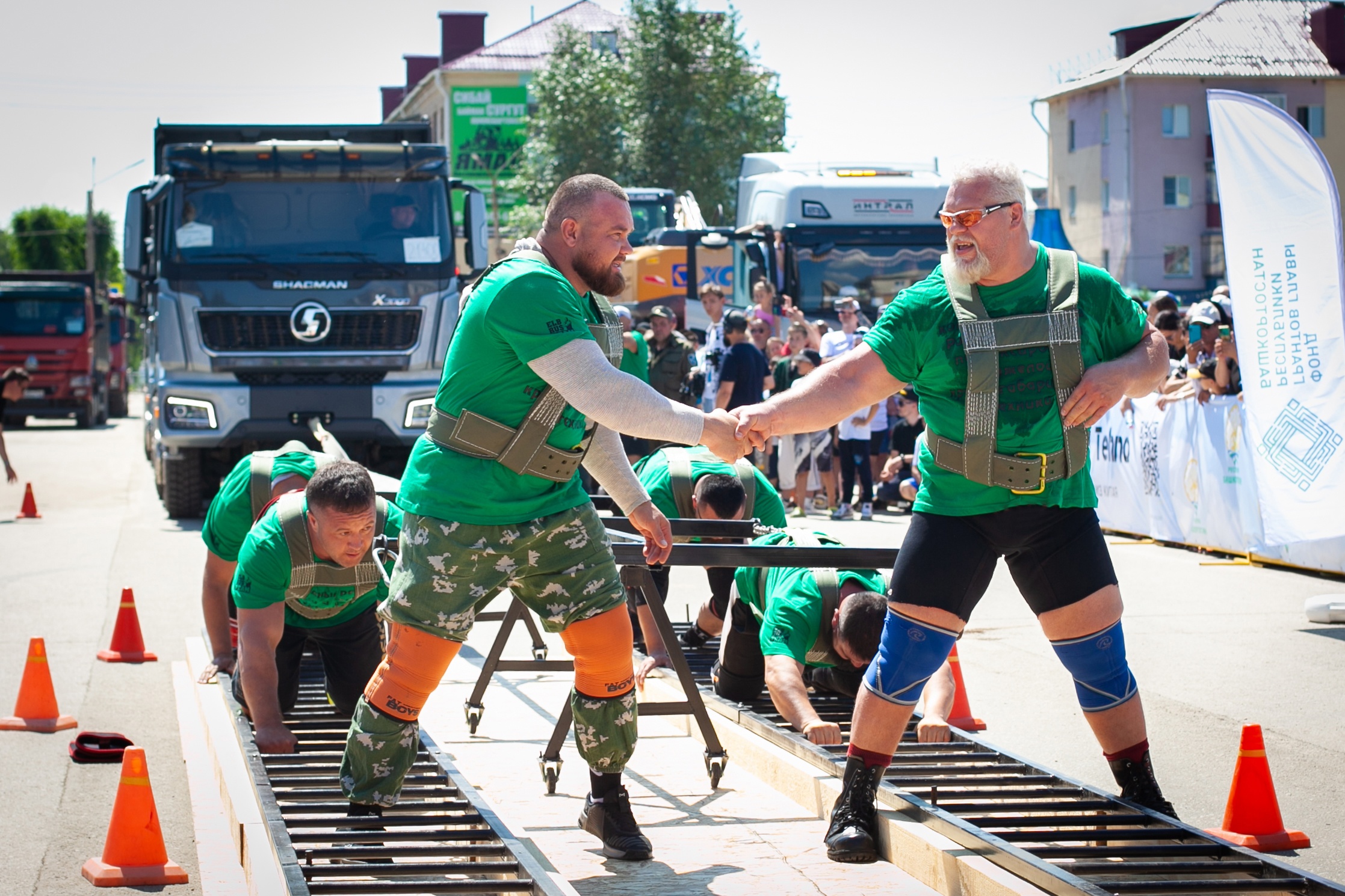 Российская команда в течение дня три раза обновила российский и мировой рекорд. В первом подходе силачи протянули автопоезд весом 88 тонн на расстояние 8 метров, во втором — отбуксировали вес, равный 106 тоннам, на 4,60 метра. Наконец, в третьем подходе сдвинули с места автопоезд весом 122 тонны.