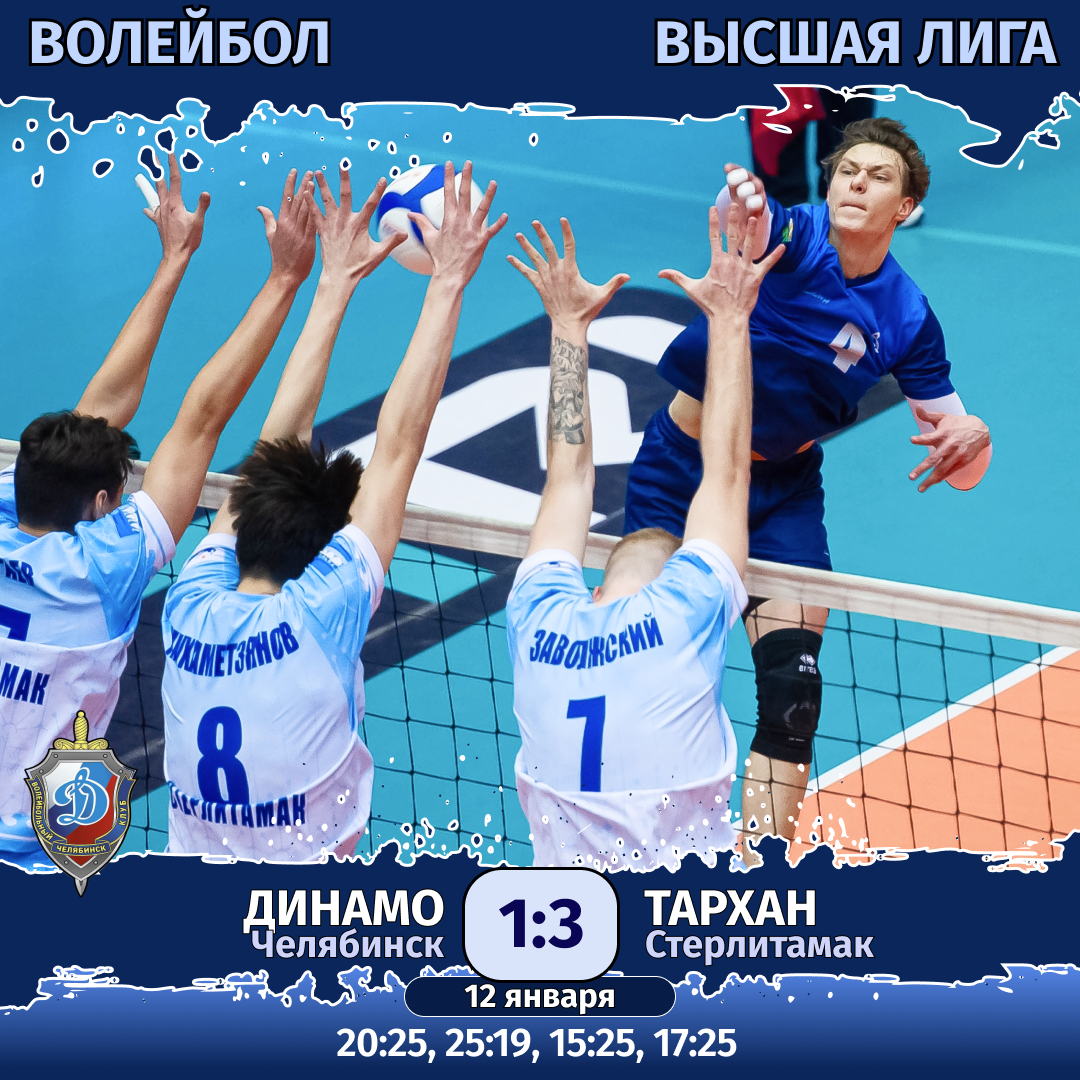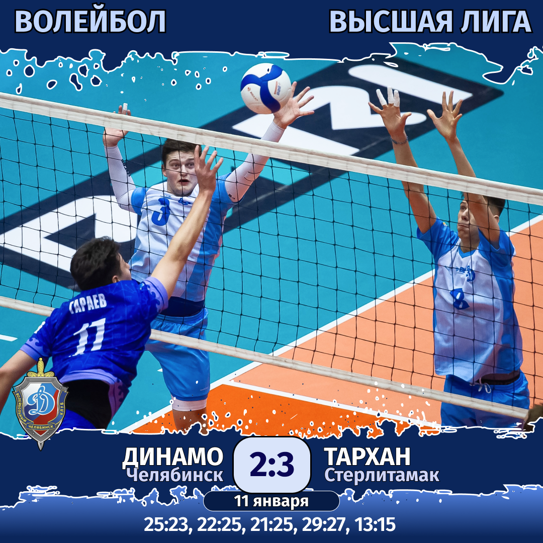 12 января. «Динамо» (Челябинск) — «Тархан» (Стерлитамак) — 1:3 (20:25, 25:19, 15:25, 17:25).