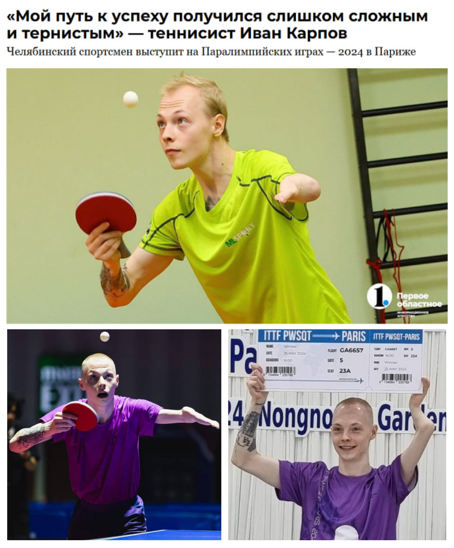Трагично, но успешно складывается карьера для челябинского спортсмена-теннисиста. У Ивана Карпова врожденная патология верхней конечности. Рос без отца, жил с бабушкой и дедушкой, а в 18‑летнем возрасте бросил спорт, чтобы хоть как-то зарабатывать себе на жизнь. А еще потерял тренера, который при жизни заменял ему отца.