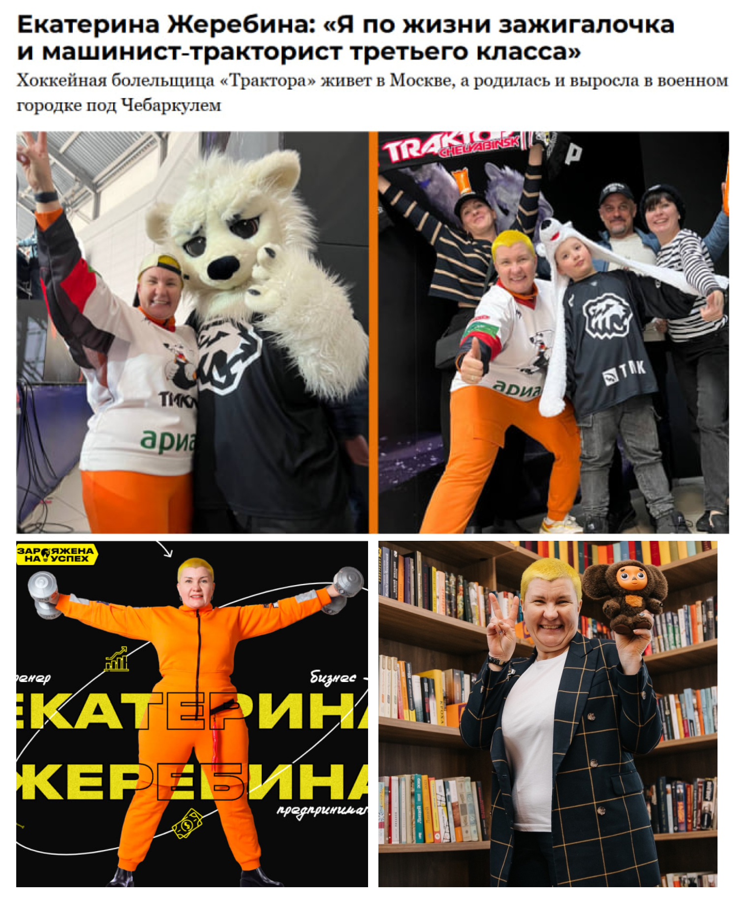Эта хоккейная болельщица заставила обратить на себя внимание во время одного из гостевых матчей «Трактора», исполнив зажигательные танцы. Екатерина Жеребина родилась и выросла в Чебаркуле, сейчас живет в Москве. Но активно поддерживает челябинский клуб, посещает игры команды на разных ледовых аренах страны.