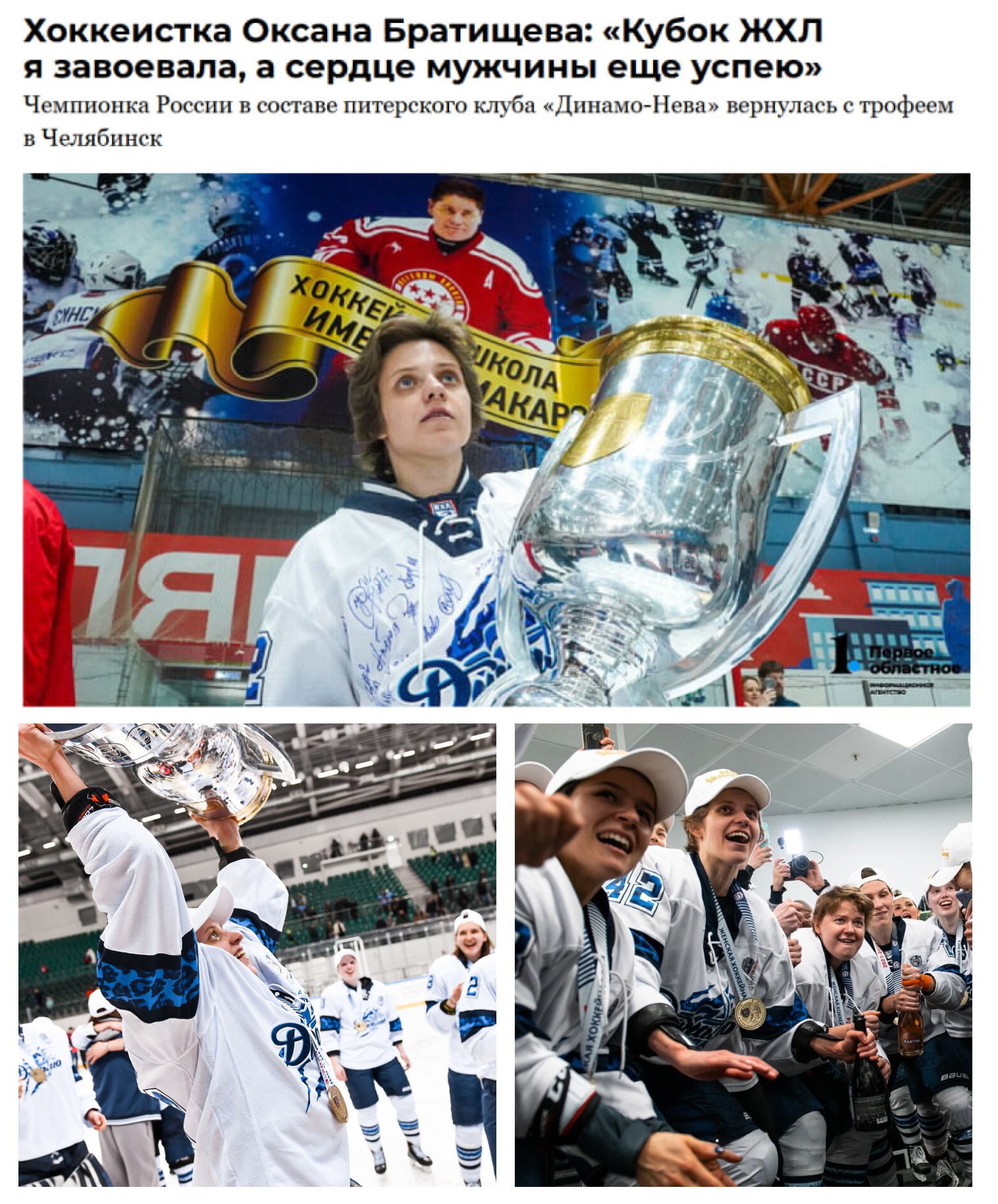 Хоккеисты челябинского «Трактора» еще только стремятся к тому, чтобы поднять главный трофей КХЛ над своими головами. А вот наши девушки уже не раз становились чемпионками страны. В сезоне-2023/2024 сделала это Оксана Братищева — один из лидеров питерского клуба «Динамо-Нева».