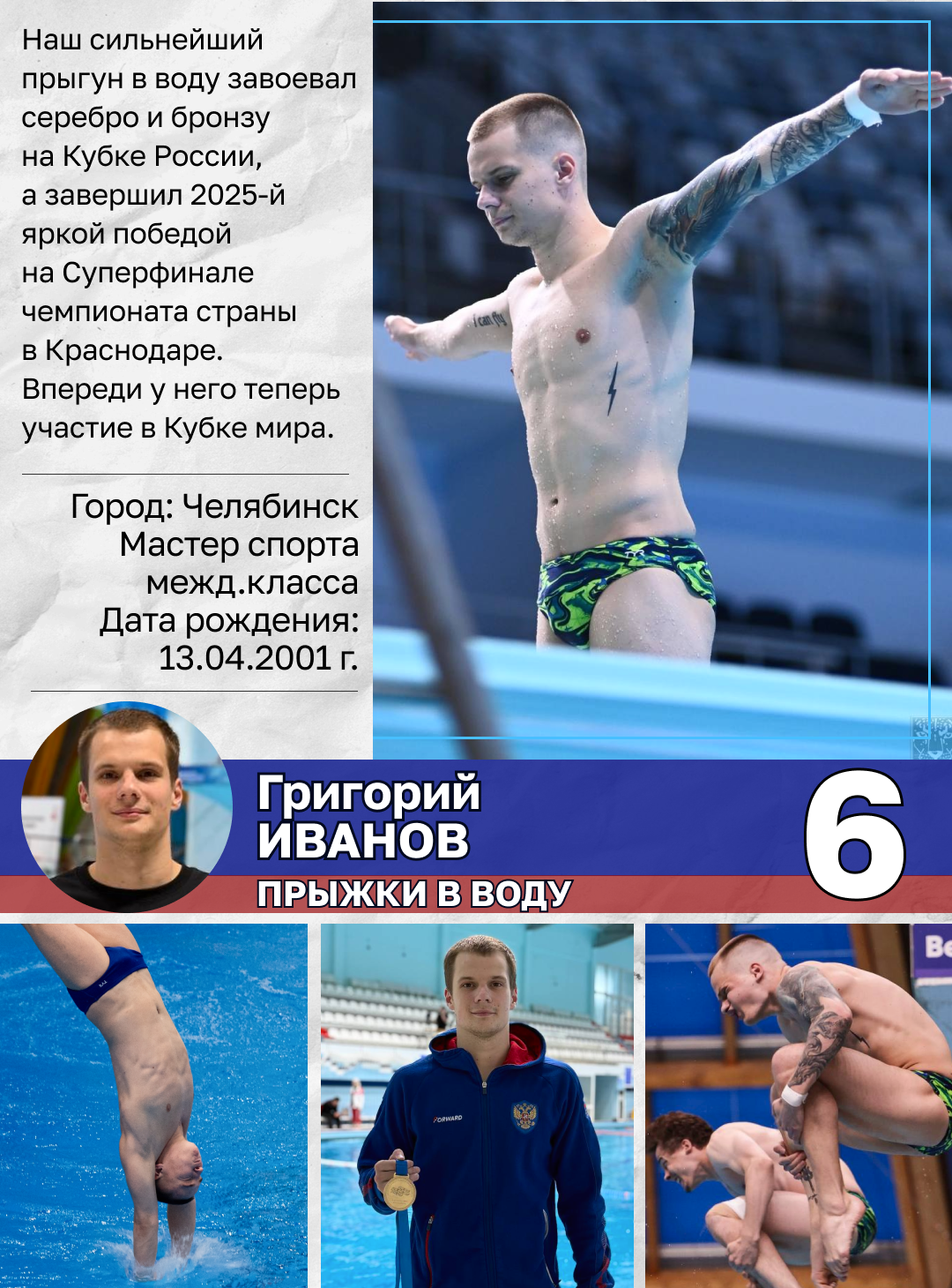 В прыжках в воду на Южном Урале не так много спортсменов экстра-класса. Григорий Иванов, вне сомнений, лучший из них. Он уже много лет входит в состав национальной сборной и с каждым годом укрепляет свои позиции в ней.