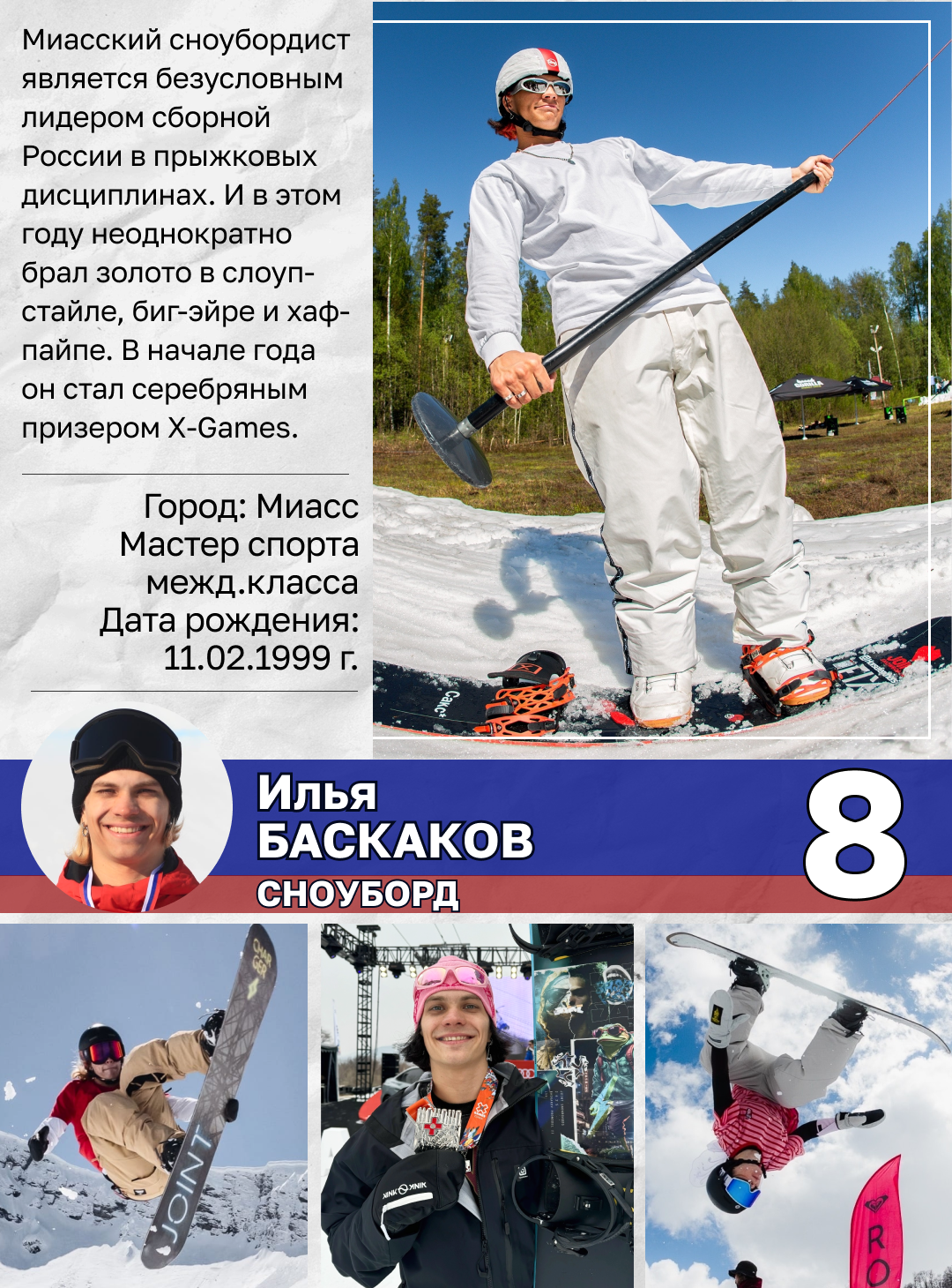 Лидерство миасского сноубордиста в прыжковых дисциплинах сборной России в этом году было неоспоримым. Илья Баскаков продемонстрировал блестящую универсальность, побеждая в трех основных видах: слоуп-стайле, биг-эйре и хаф-пайпе. Его серебро на X-Games подтвердило высочайший мировой уровень, а традиционная гегемония на внутренних чемпионатах лишь подчеркнула его класс.