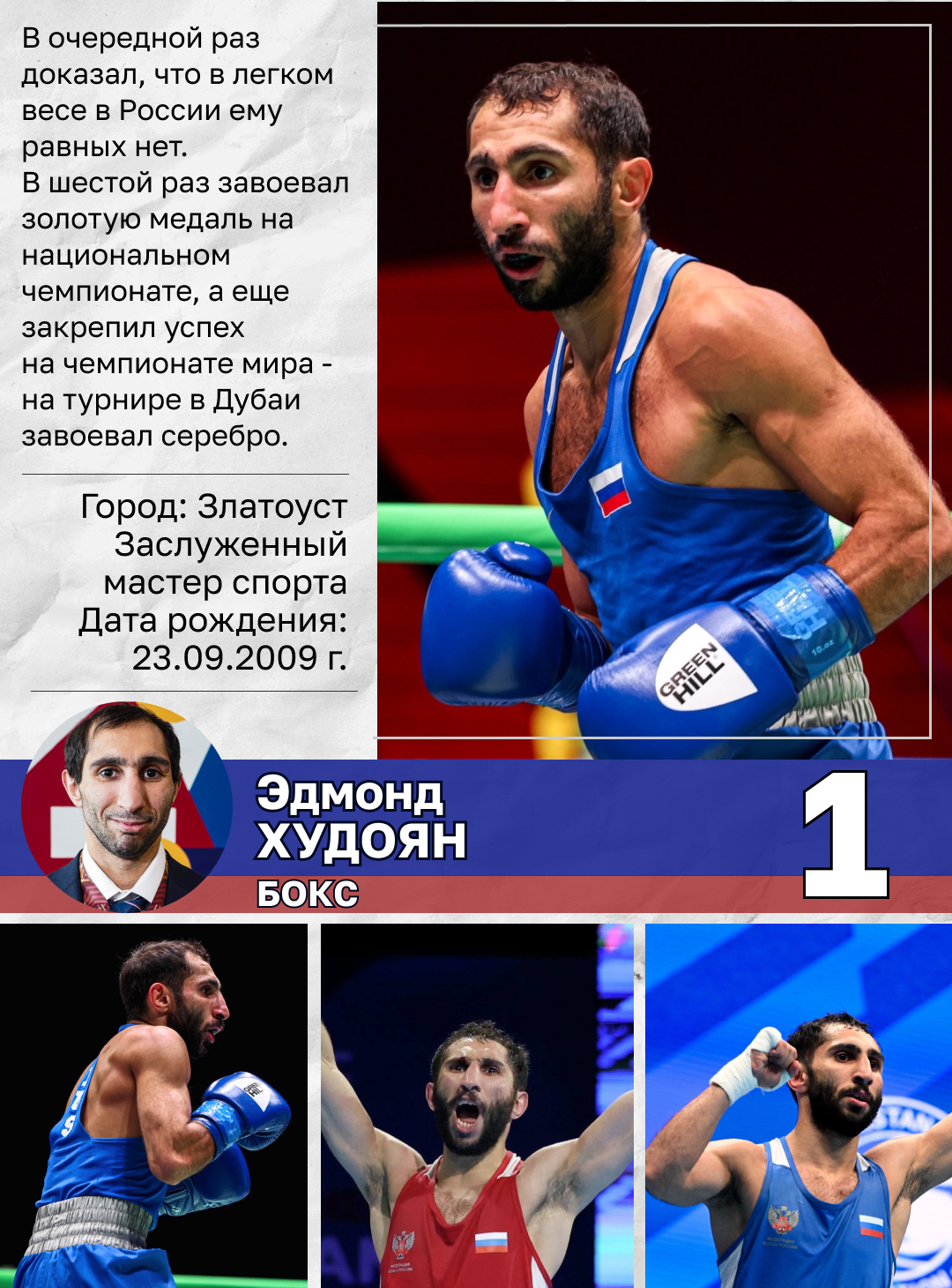 Боксер из Златоуста Эдмонд Худоян подтвердил свое абсолютное лидерство в легком весе на российском ринге. В уходящем году он в шестой раз стал чемпионом страны, а затем завоевал серебряную медаль на мировом первенстве в Дубае.