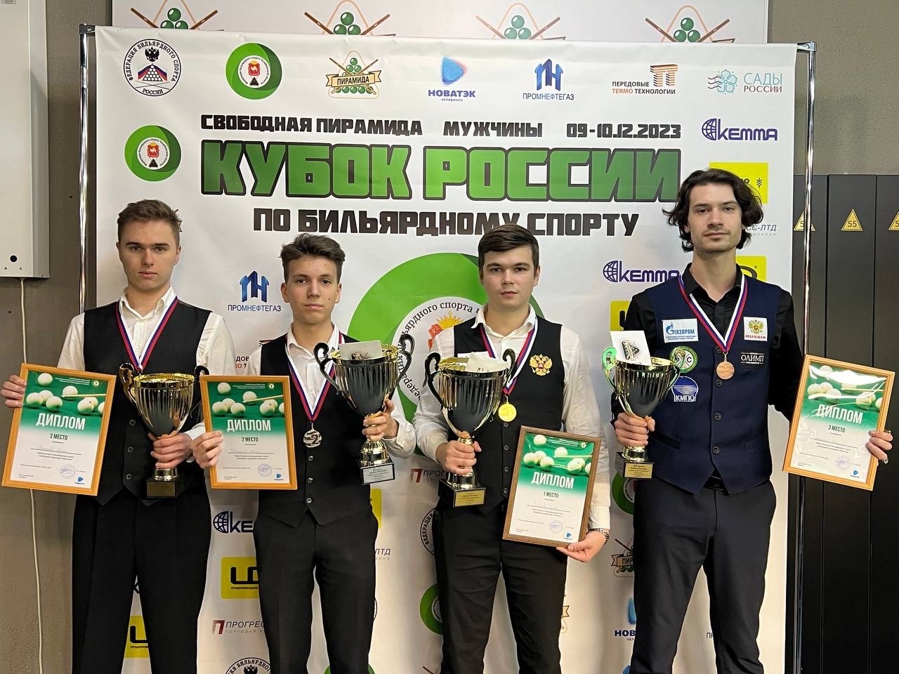 В Челябинске завершился Кубок России по бильярдному спорту, победу в котором одержал чемпион мира — 2022 Семен Зайцев. Он завоевал золото в дисциплине «Свободная пирамида», взяв кубок и денежный приз. Серебряным и бронзовым призерами турнира стали также хозяева соревнований, сообщает региональная федерация бильярдного спорта.