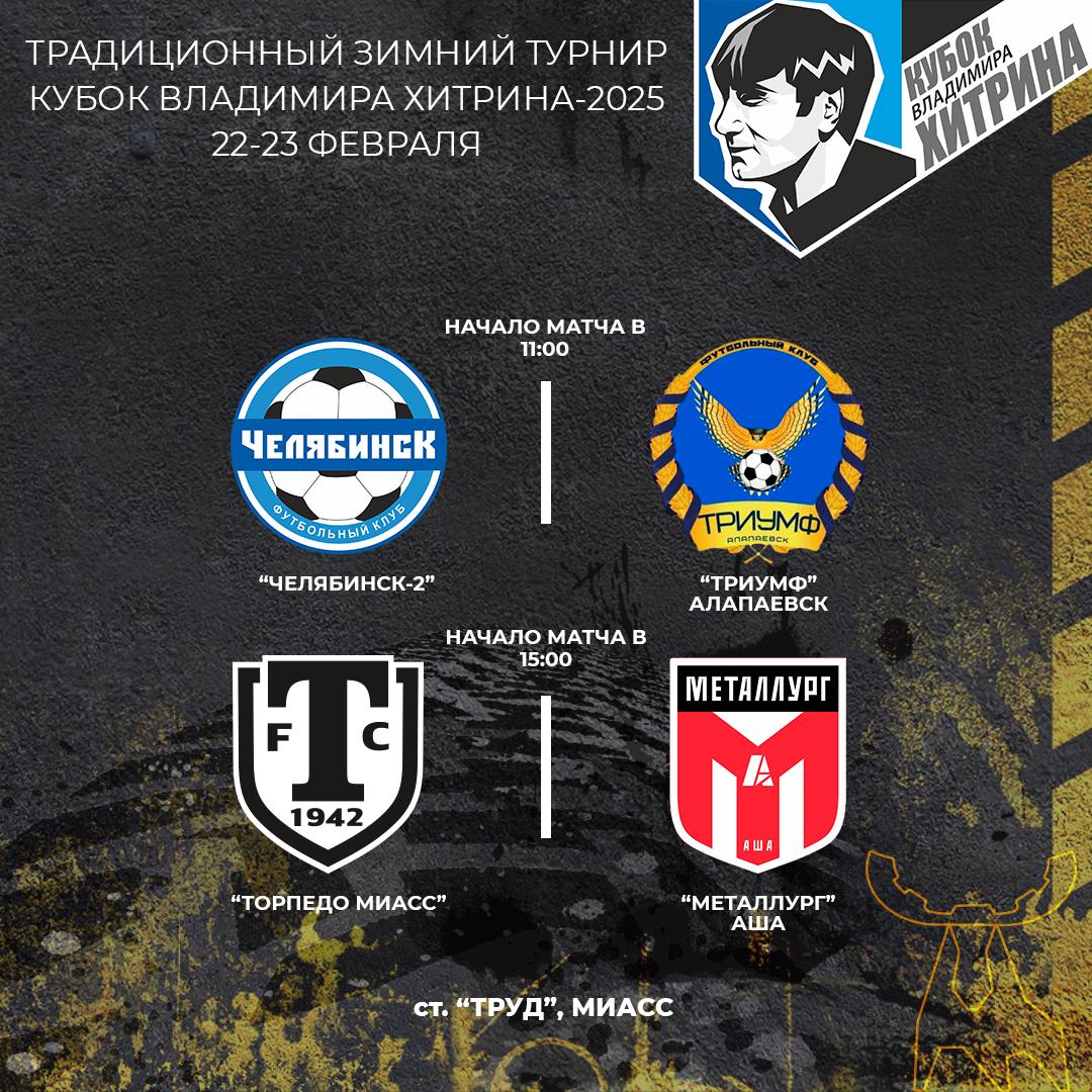 В первый день Кубка Владимира Хитрина, 22 февраля, состоятся два полуфинала. В 11:00 «Челябинск-2» сыграет против команды «Триумф», а в 15:00 сразятся «Торпедо» и «Металлург» (Аша). Во второй день, 23 февраля, состоятся матчи за третье место и финал.