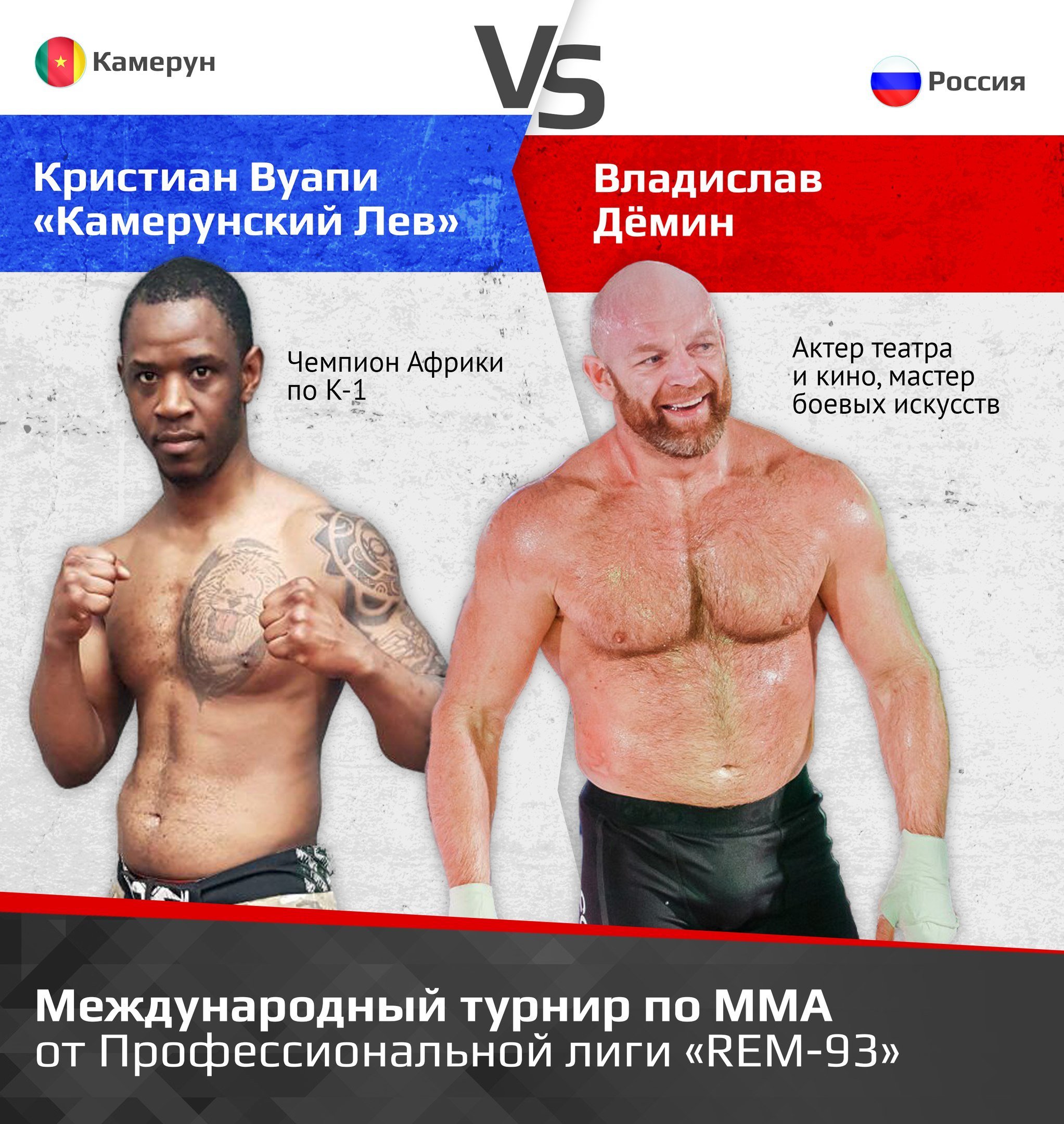 Изюминкой турнира станет «звездный» бой с участием Владислава Демина. Актер театра и кино проведет бой в супертяжелом весе против чемпиона Африки по K-1 2014 года, финалистом чемпионата Азии по кикбоксингу 2015 года Кристиана Вуапи из Камеруна. — рассказали сайту «Первый областной» организаторы турнира.