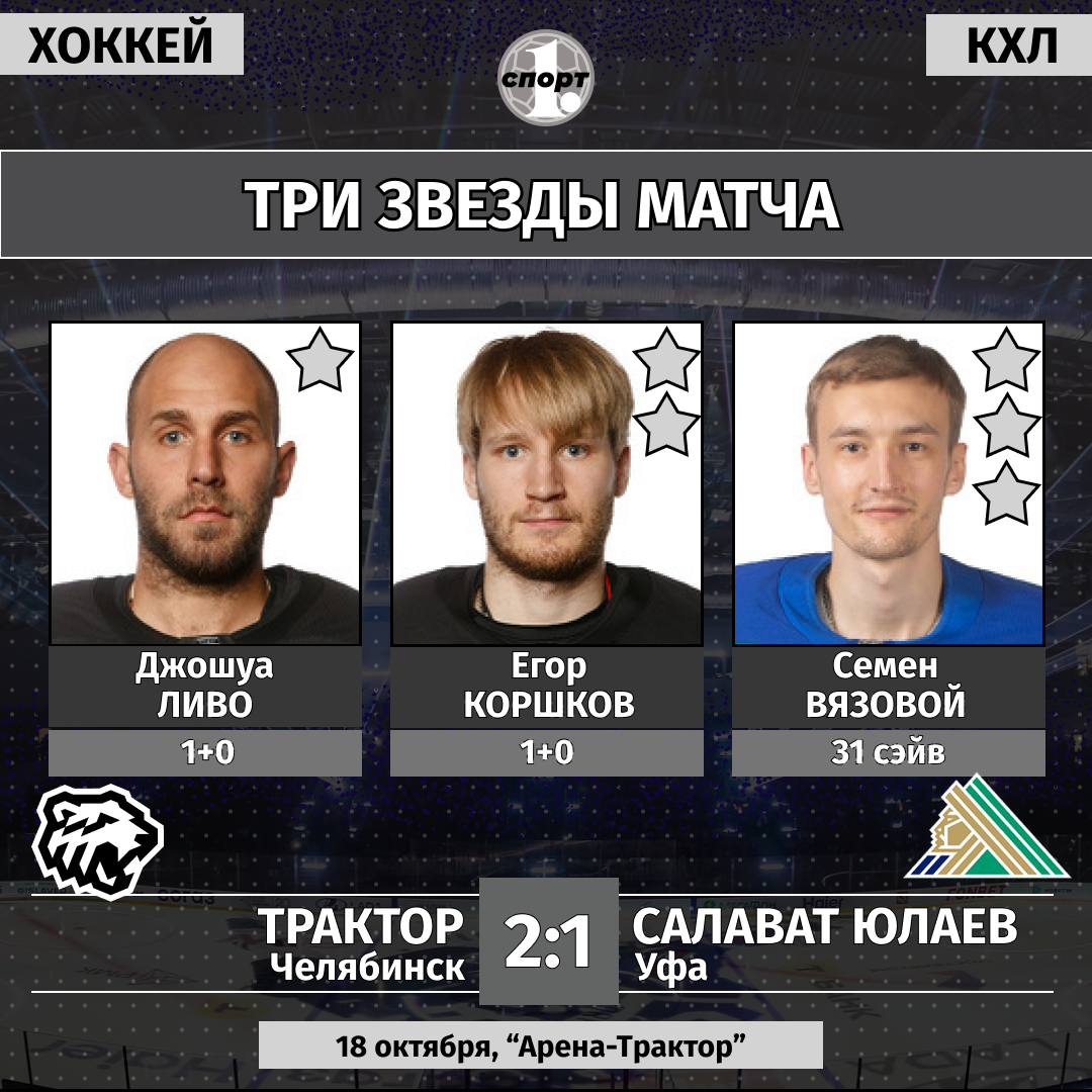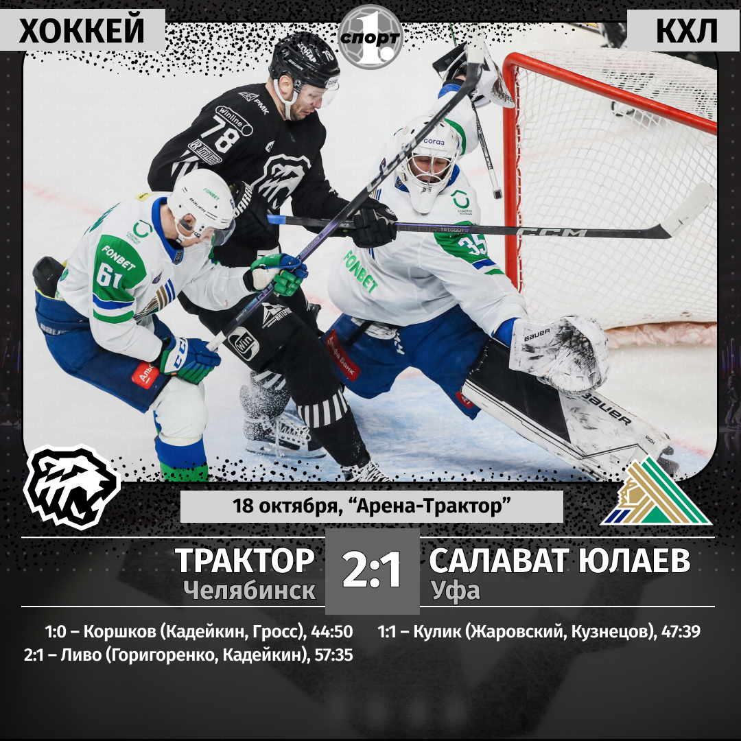 Хоккей. Сезон-2025/2026. Чемпионат КХЛ. 18 октября. «Трактор» (Челябинск) — «Салават Юлаев» (Уфа) — 2:1 (0:0, 0:0, 2:1)