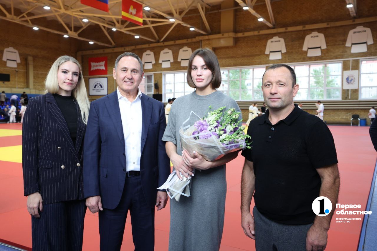 Валерий Бондаренко вручил денежные премии талантливой дзюдоистке Еве Огнивовой и ее личному тренеру Андрею Васильевичу Морозову за их выдающееся достижение. Накануне спортсменка завоевала бронзовую медаль на первенстве Европы среди юниоров до 21 года.