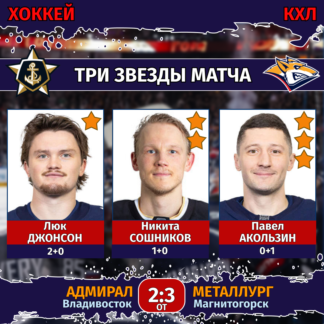 Забросил важнейшую шайбу, которая помогла «Адмиралу» вернуться в игру и перевести игру в овертайм.