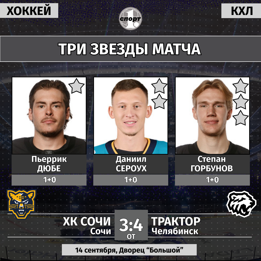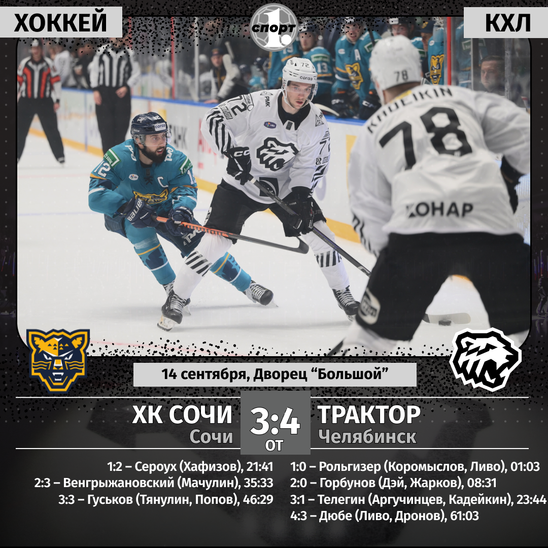 Хоккей. КХЛ. Сезон-2025/2026. 14 сентября. ХК «Сочи» — «Трактор» (Челябинск) — 3:4 от (0:2, 2:1, 1:0, 0:1).