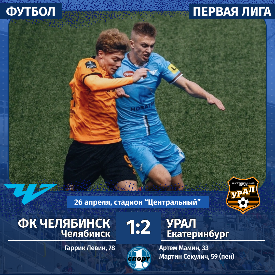 Футбол. Сезон-2025/2026. Первая лига. 31-й тур. 26 апреля. ФК «Челябинск» — «Урал» (Екатеринбург) — 1:2.