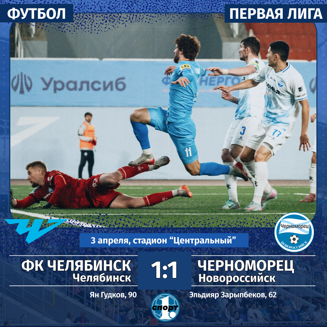 В очередном туре первенства в Первой лиге снова потерял очки футбольный клуб «Челябинск». Подопечные Романа Пилипчука сыграли вничью на своем поле с новороссийском «Черноморцем» (1:1), причем ушли от поражения на последних минутах благодаря голу Яна Гудкова. Наша команда неудачно проводит весеннюю часть сезона, в последних пяти матчах не одержав ни одной победы, сообщает корреспондент ИА «Первое областное».