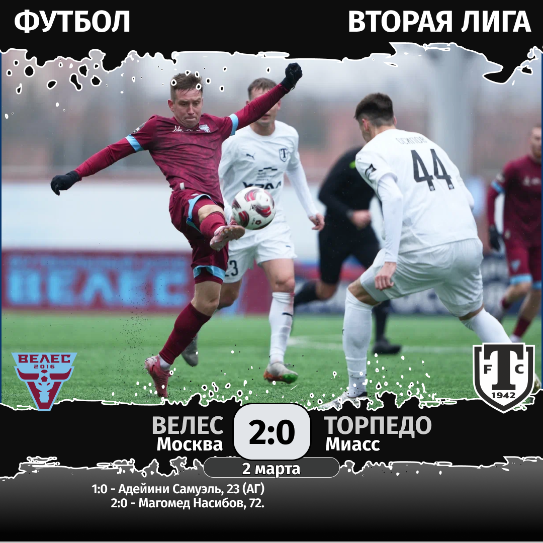 «Велес» (Москва) — «Торпедо» (Миасс) — 2:0.