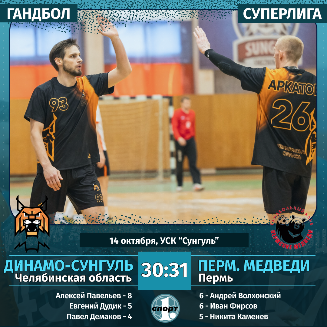 14 октября. «Динамо-Сунгуль» (Челябинская область) — «Пермские медведи» (Пермь) — 30:31 (17:16).