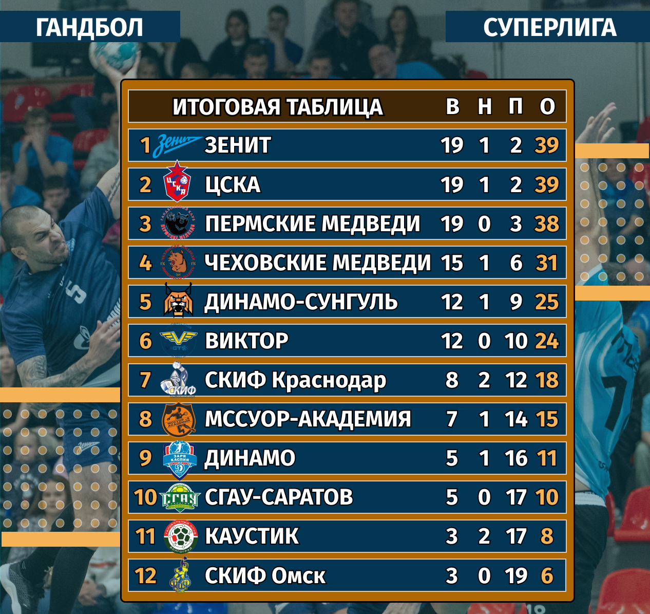 В гандбольной Суперлиге завершился регулярный чемпионат, по итогам которого определились все участники плей-офф. Клуб «Динамо-Сунгуль» в заключительном матче уступил в равном поединке «Чеховским медведям» со счетом 36:37 и занял итоговое пятое место. В первом раунде плей-офф южноуральцы сразятся с тем же соперником, сообщает корреспондент ИА «Первое областное».
