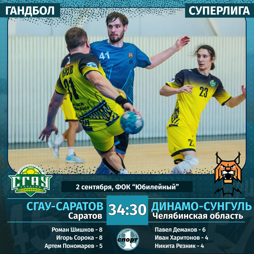 В гандбольной Суперлиге с поражения стартовал в новом сезоне клуб «Динамо-Сунгуль». Южноуральская команда в равном поединке уступила в гостях «СГАУ-Саратов» — 30:34. В составе соперников фантастический матч провел голкипер волжан Игорь Сергеев. Благодаря его надежной игре и сейвам хозяева праздновали успех, сообщает корреспондент ИА «Первое областное».