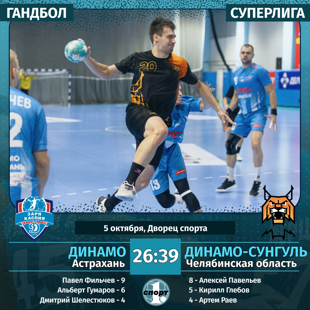 Гандбол. Сезон-2025/2026. Чемпионат России. Суперлига. Мужчины. 6-й тур. 5 октября. «Динамо» (Астрахань) — «Динамо-Сунгуль» (Челябинская область) — 26:39 (9:17).