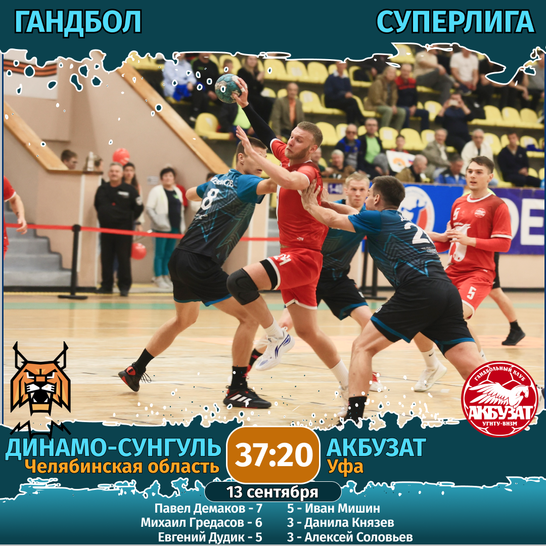 Гандбол. Чемпионат России. Суперлига. 13 сентября. «Динамо-Сунгуль» (Челябинская область) — «Акбузат» (Уфа) — 37:20 (17:12).