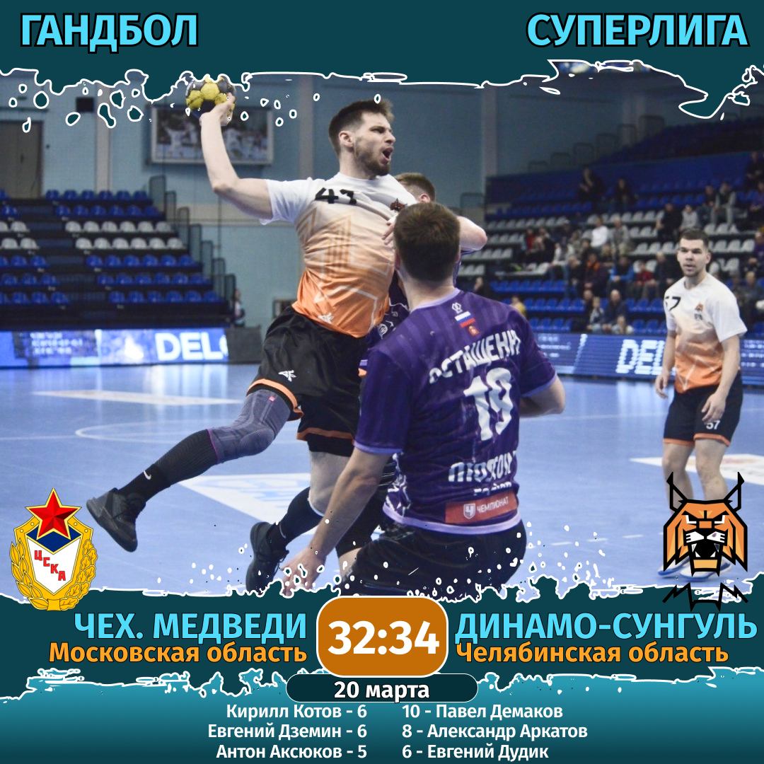 В современной своей истории «Динамо-Сунгуль» никогда не побеждал «Чеховских медведей» на их же площадке. Вчера, 20 марта, эту тенденцию удалось нарушить. Подопечные Дмитрия Карлова провели отличный матч, выиграв у самого титулованного клуба страны со счетом 34:32.