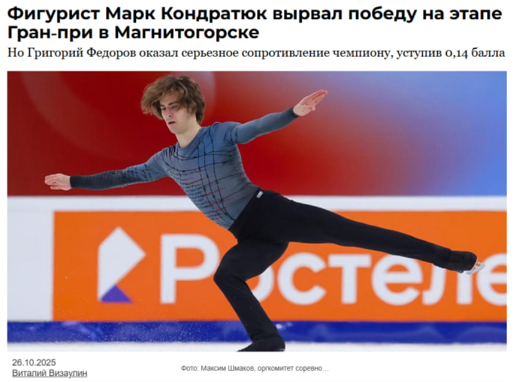 Вот и этап Гран-при, прошедший в Магнитогорске, был в центре всеобщего внимания. Запомнилась прежде всего драматичная развязка в мужском одиночном катании, в которой вырвал победу Марк Кондратюк. Он опередил Григория Федорова лишь на 14 сотых балла! Такую драматичную развязку оценили наши читатели, новость на 1obl.ru попала в топ по количеству просмотров уходящего года.