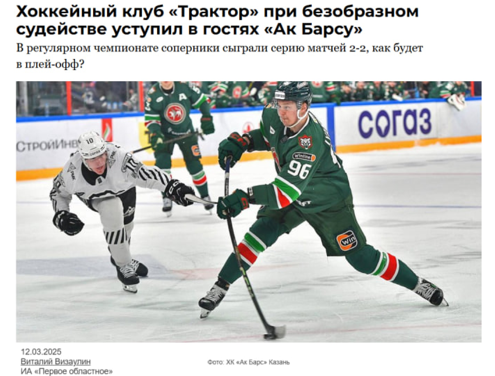 Хоккейный матч челябинского «Трактора» и казанского «Ак Барса» открывает наш топ-3 самых просматриваемых материалов по итогам 2025 года. Наша команда в столице Татарстана потерпела хоть и заслуженное, но обидное поражение со счетом 2:6. Игру испортили судьи, которые слишком уж часто свистели в нашу сторону.