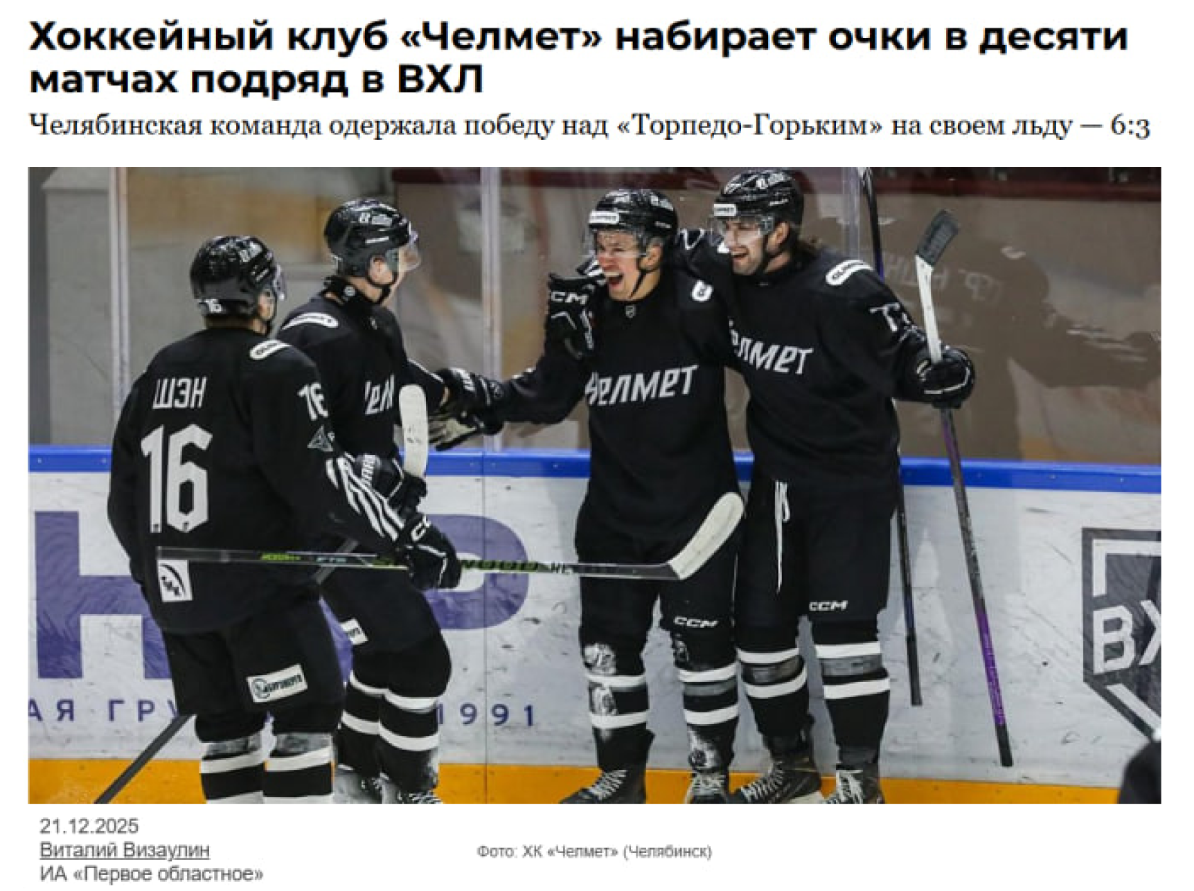 Репортаж о победном матче «Челмета» в ВХЛ можно прочитать здесь.