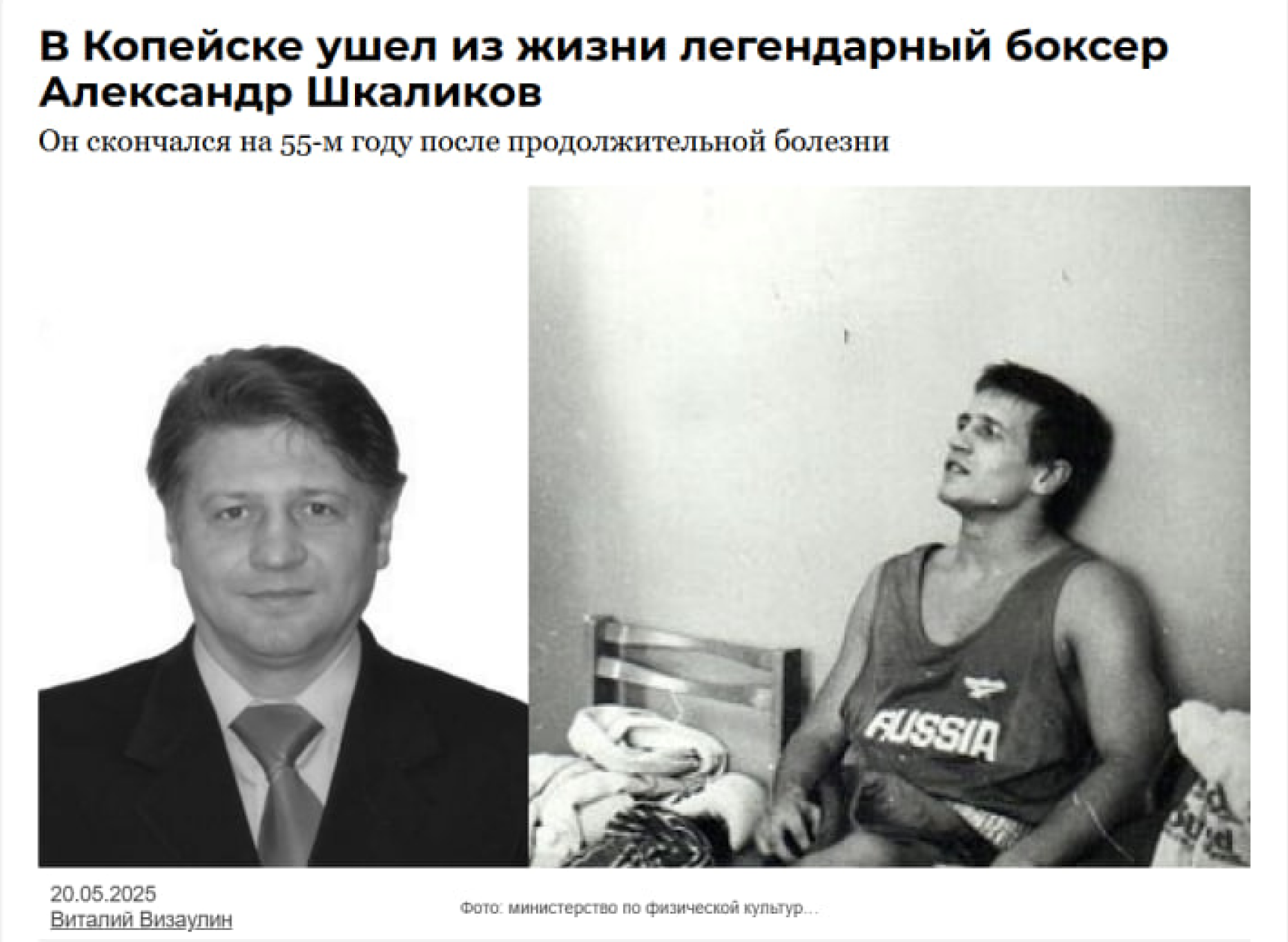 Большое количество просмотров вызвала и печальная новость. 20 мая ушел из жизни после продолжительной болезни один из самых титулованных боксеров Челябинской области Александр Шкаликов. Четырехкратный чемпион России скончался в Копейске на 55-м году жизни. Он является родным братом известного боксера-профессионала Андрея Шкаликова.