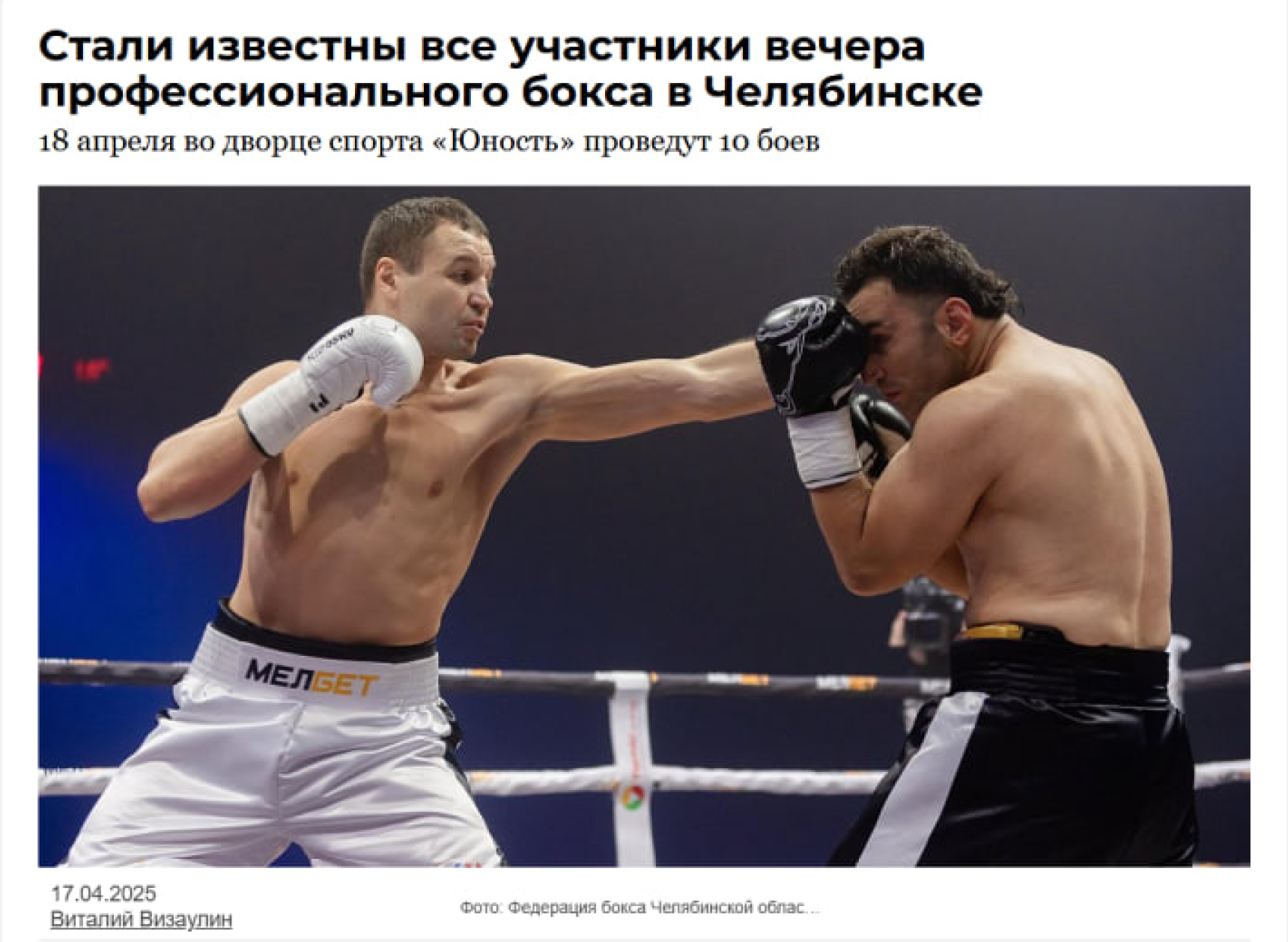 И вот он, лидер по количеству просмотров! Удивительно, но самым «читабельным» стал анонсовый материал, в котором мы рассказали о предстоящем в Челябинске событии. Речь идет о вечере профессионального бокса, прошедшем 18 апреля во дворце спорта «Юность».