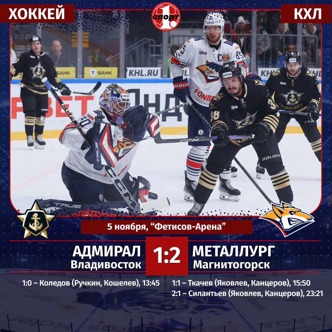 Хоккей. Сезон-2025/2026. Чемпионат КХЛ. 5 ноября. «Адмирал» (Владивосток) — «Металлург» (Магнитогорск) — 1:2 (1:1, 0:1, 0:0).