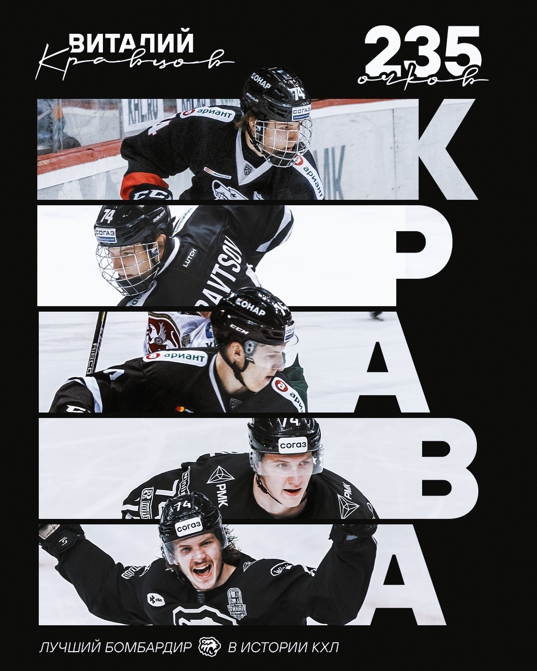 Напомним, что Виталий Кравцов дебютировал в КХЛ в сезоне 2016/2017 и оформил дебютный балл в Лиге в своей четвертой игре, забив «Барысу» в своей первой встрече Кубка Гагарина.
