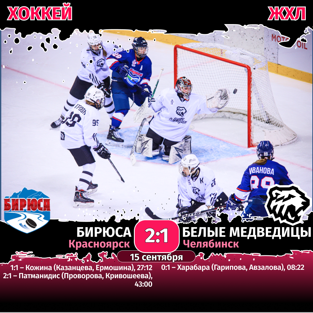 Чемпионат России. ЖХЛ. «Бирюса» (Красноярск) — «Белые медведицы» (Челябинск) — 2:1 (0:1, 1:0, 1:0).
