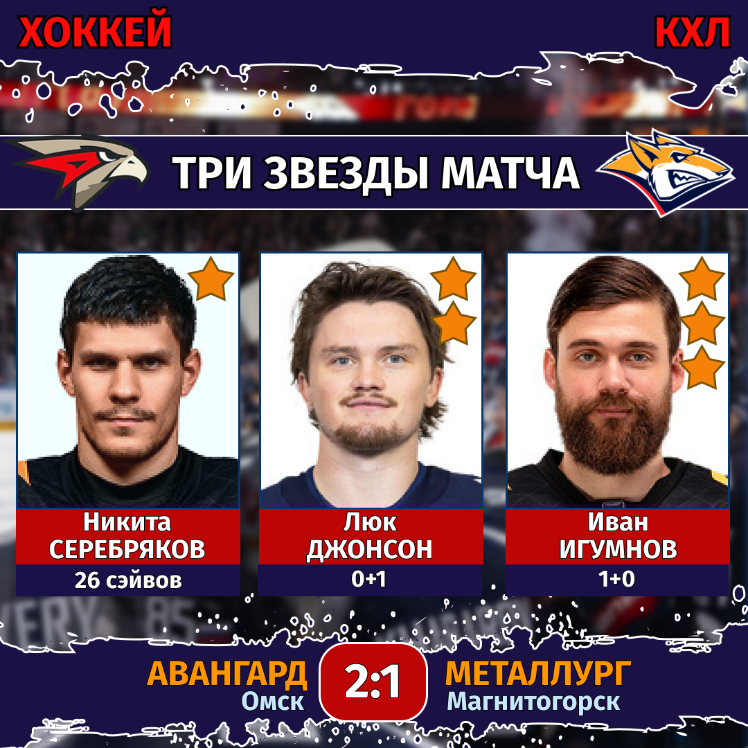 Моменты для того, чтобы сравнять счет, у магнитогорцев были. Не позволил им уйти от поражения голкипер омичей Никита Серебряков. Он стоял «стеной», парируя сложнейшие броски. Во многом благодаря его усилиям «Авангард» сохранил победный счет.