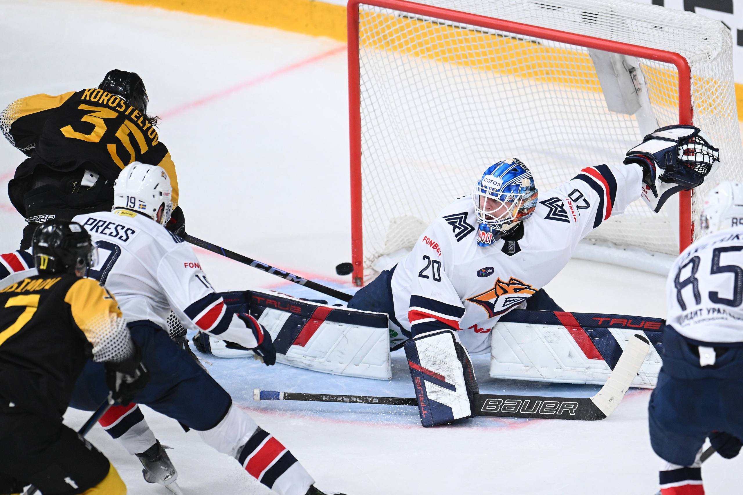 Хотя первый период получился голевым. Более того, «Северсталь» его провела лучше. Хозяева льда сжали в крепкие тиски оппонентов, предложив тем высокий прессинг. У хоккеистов «Металлурга» обнаружились очевидные проблемы с началом атак. Первый бросок в створ ворот они нанесли лишь в середине периода. Самую верную возможность открыть счет в матче упустили хозяева — в самой концовке в быстром прорыве убежал Адам Лишка, шайба после его броска угодила в перекладину.