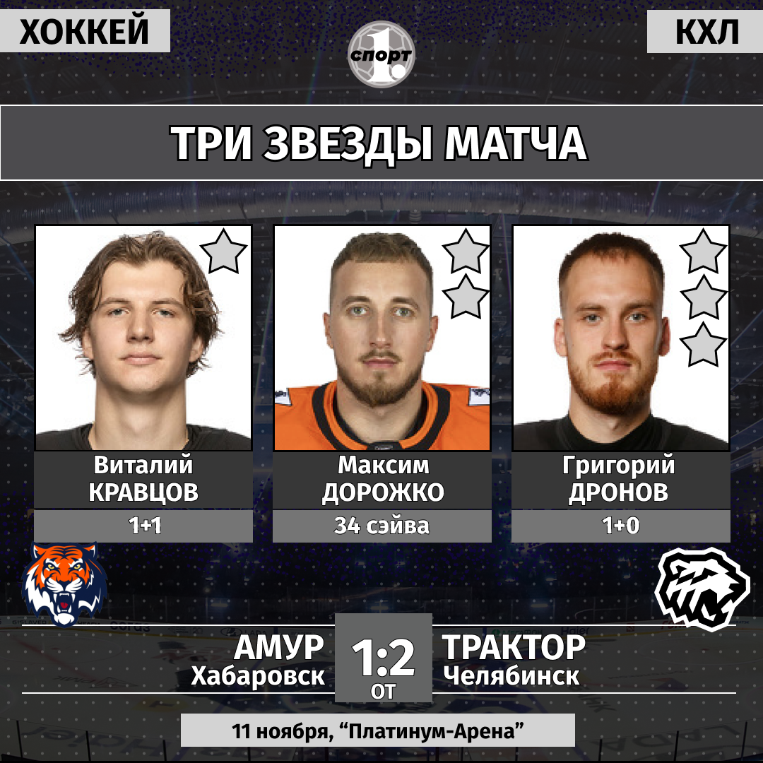 Челябинский «Трактор» одержал победу в овертайме над хабаровским «Амуром» в чемпионате КХЛ — 2:1 Помогли это сделать команде вернувшийся в родной клуб Виталий Кравцов, а также отбывший дисквалификацию Григорий Дронов. Южноуральский клуб одержал вторую победу на Дальнем Востоке в ходе выездной серии матчей, передает корреспондент ИА «Первое областное».