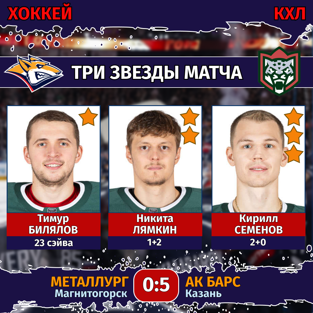 Хоккей. Чемпионат КХЛ. 14 октября. «Металлург» (Магнитогорск) — «Ак Барс» (Казань) — 0:5 (0:2, 0:2, 0:1).