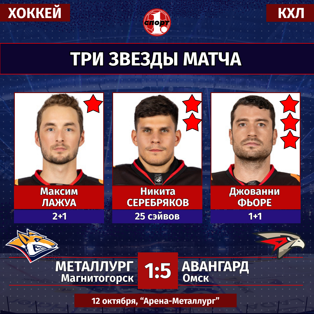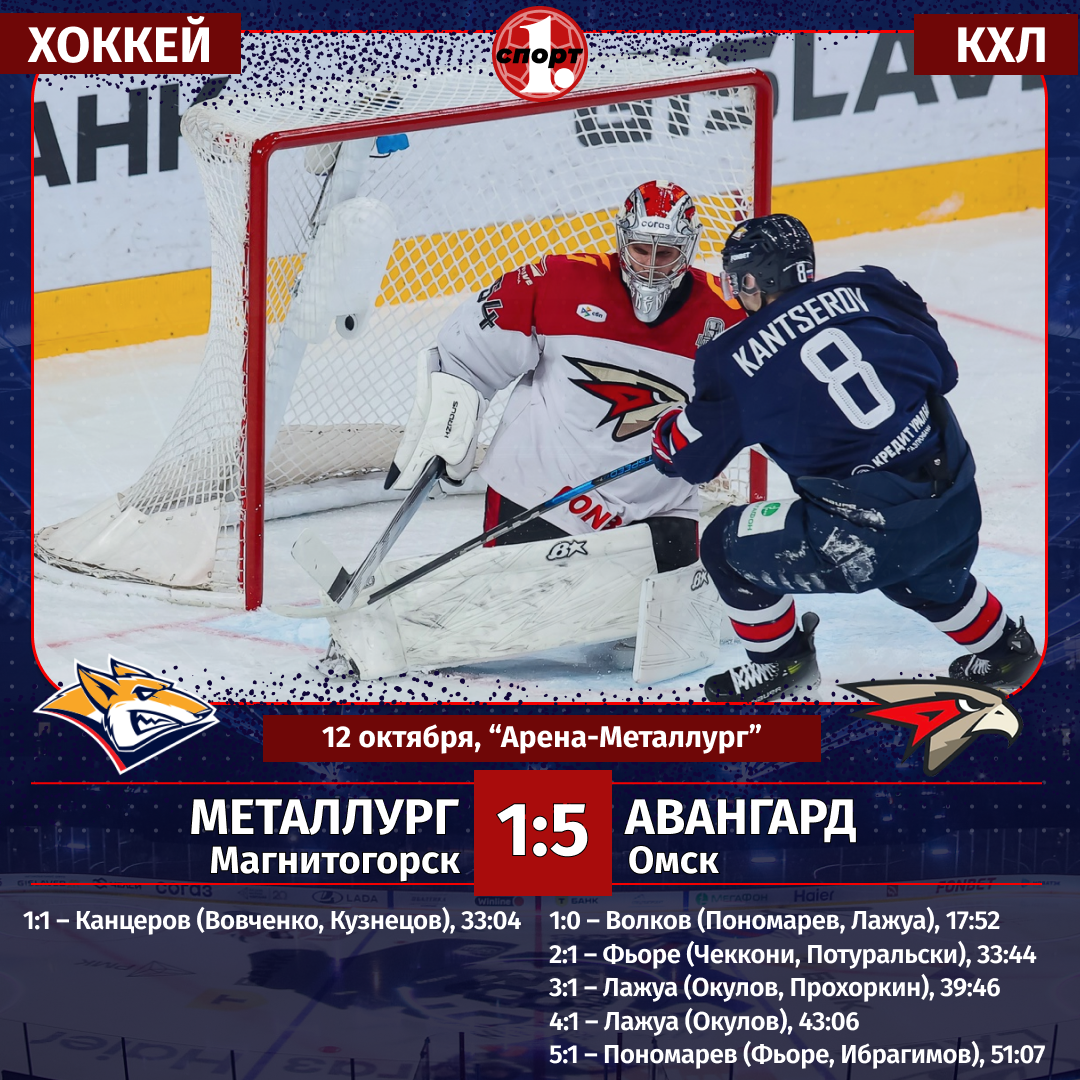 Хоккей. Сезон-2025/2026. Чемпионат КХЛ. 12 октября. «Металлург» (Магнитогорск) — «Авангард» (Омск) — 1:5 (0:1, 1:2, 0:2).