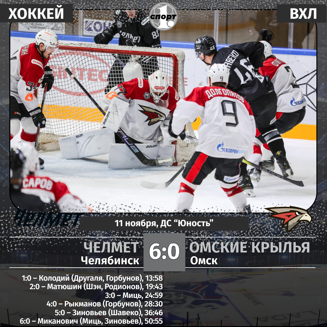 Хоккей. Сезон-2025/2026. Чемпионат ВХЛ. 11 ноября. «Челмет» (Челябинск) — «Омские крылья» (Омск) — 6:0 (2:0, 3:0, 1:0).