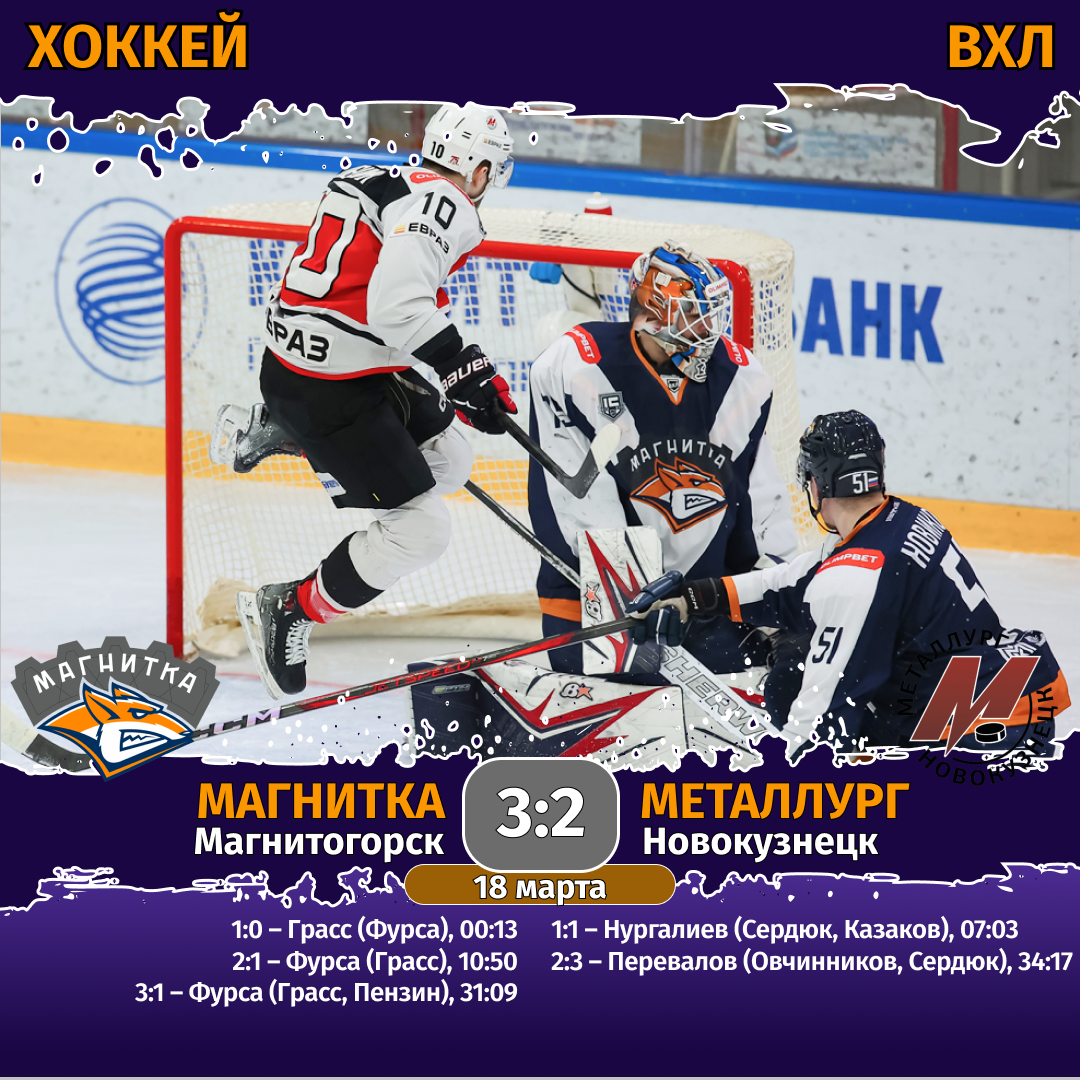 Последний матч регулярного чемпионата «Магнитке» предстояло сыграть с лидером турнира — новокузнецким «Металлургом». Южноуральской команде кровь из носу нужно было побеждать, иначе она оказывалась за бортом плей-офф. С этой задачей парни из Магнитогорска успешно справились. Героями матча стали Алексей Фурса и Михаил Грасс, которые приняли участие во всех трех заброшенных командой шайбах.