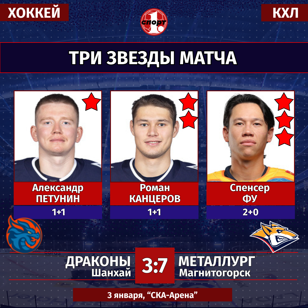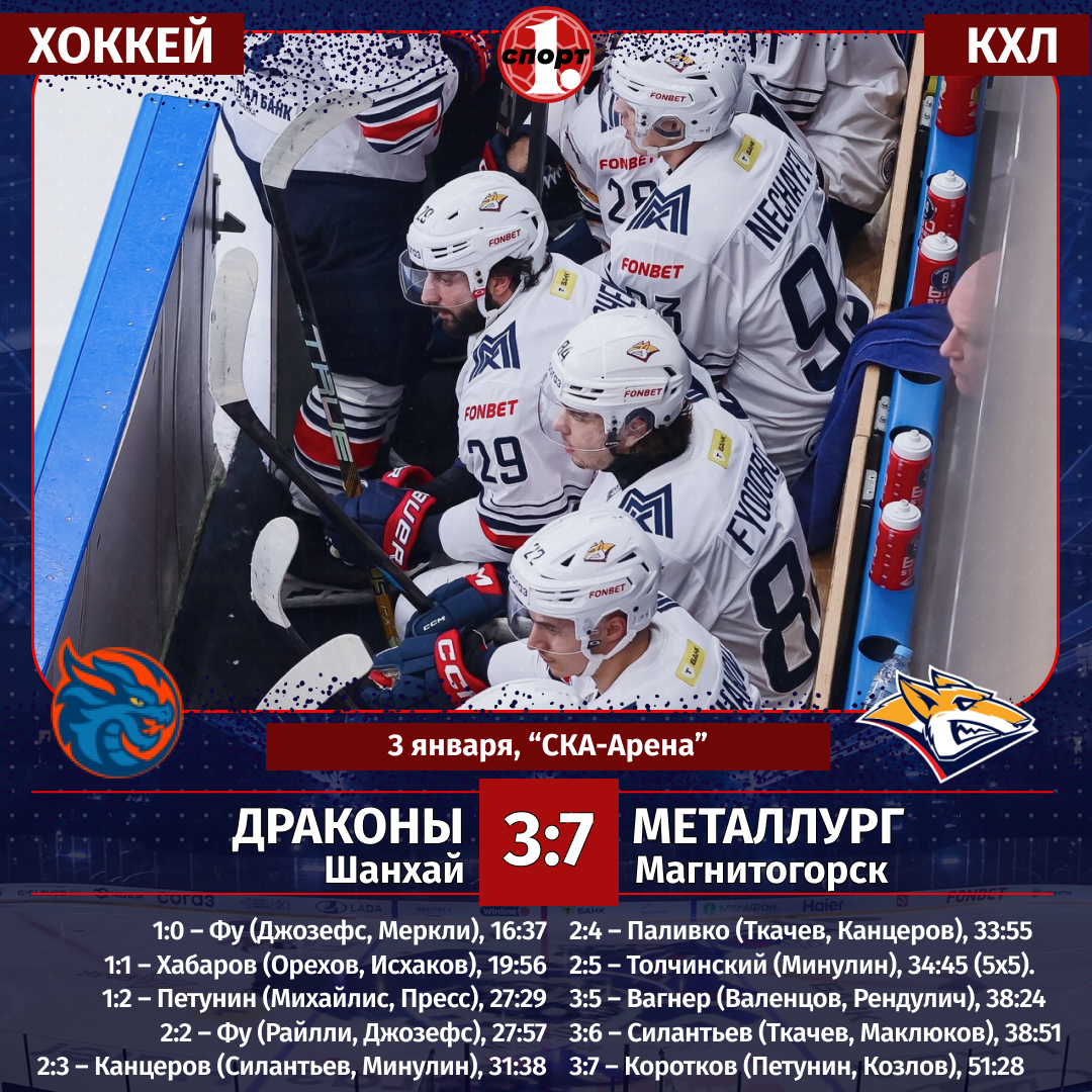Хоккей. Сезон-2025/2026. Чемпионат КХЛ. 3 января. «Шанхайские Драконы» (Шанхай) — «Металлург» (Магнитогорск) — 3:7 (1:1, 2:5, 0:1).